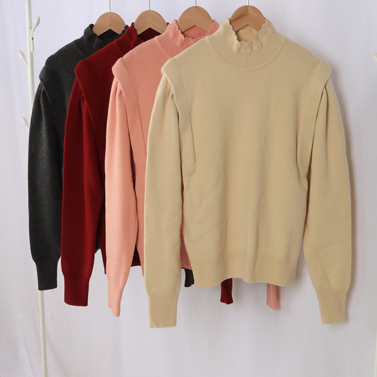 Clear goods processing IS lace half high collar pullover solid color loose warm thick women’s wool sweater