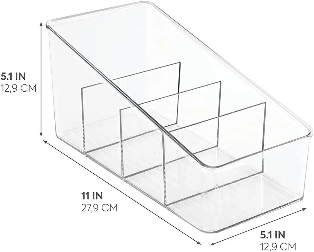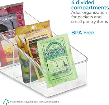 The iDesign Plastic Storage Organizer Bin is the perfect solution for organizing your kitchen, fridge, freezer, pantry, and cabinets. Made from high-quality, BPA-free plastic, this storage bin is durable and safe for storing food items. The clear design allows you to easily see what’s inside, making it easy to find what you need. The built-in handles make it easy to carry and move the bin around, while the compact size of 10.5″ x 5″ x 5″ makes it perfect for fitting into tight spaces. Whether you’re looking to organize your pantry, keep your fridge tidy, or store snacks in your cabinet, the iDesign Plastic Storage Organizer Bin is the perfect solution.