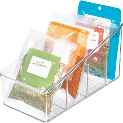 The iDesign Plastic Storage Organizer Bin is the perfect solution for organizing your kitchen, fridge, freezer, pantry, and cabinets. Made from high-quality, BPA-free plastic, this storage bin is durable and safe for storing food items. The clear design allows you to easily see what’s inside, making it easy to find what you need. The built-in handles make it easy to carry and move the bin around, while the compact size of 10.5″ x 5″ x 5″ makes it perfect for fitting into tight spaces. Whether you’re looking to organize your pantry, keep your fridge tidy, or store snacks in your cabinet, the iDesign Plastic Storage Organizer Bin is the perfect solution.