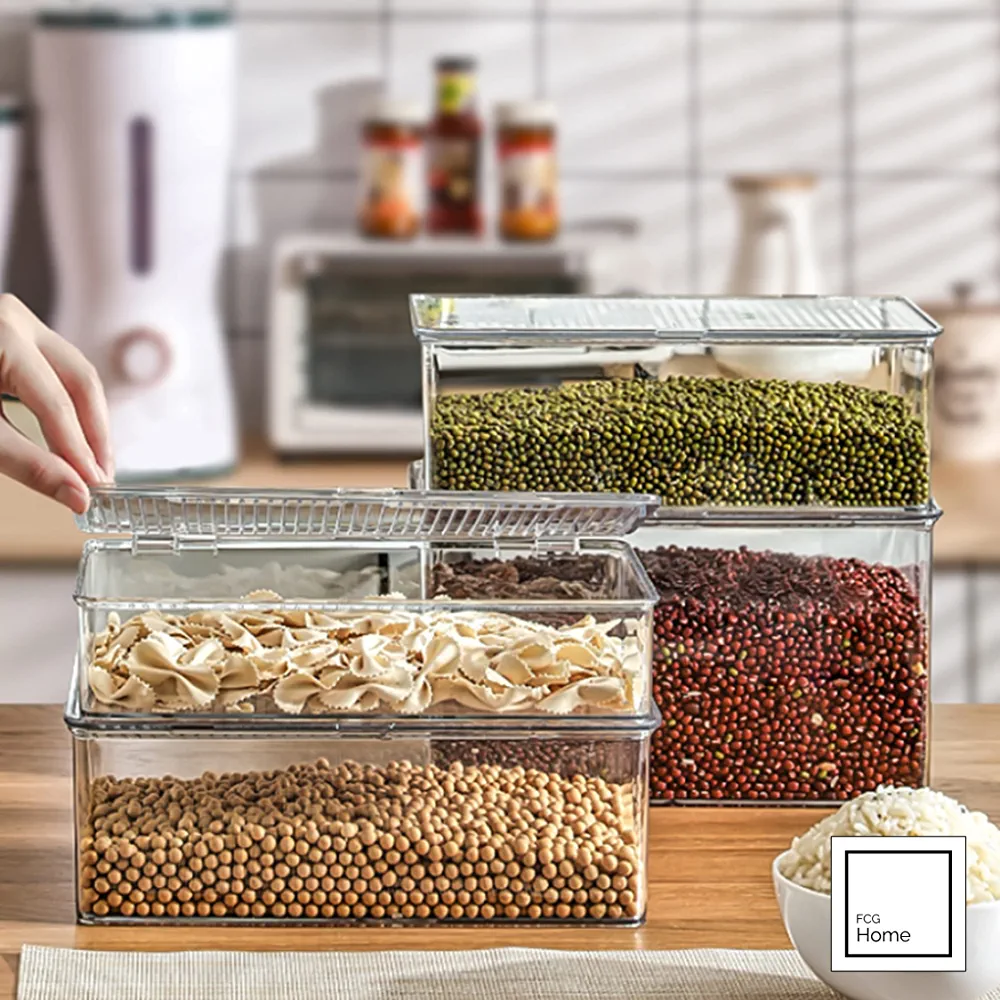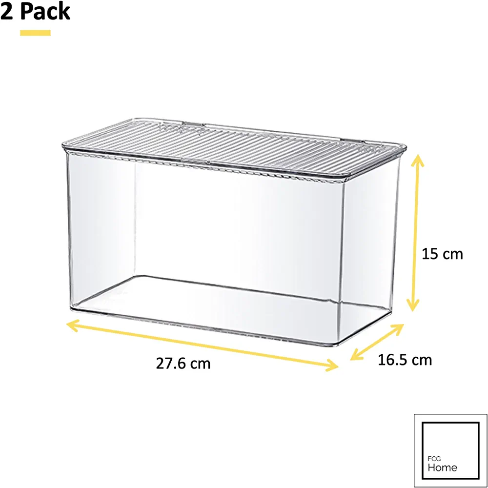 | nameOriginal | FCG Home – Clear Plastic Fridge Box with Lid – Storage Organizer Bin, Ideal for Fridge Pantry Kitchen Bathroom (2, Large) |