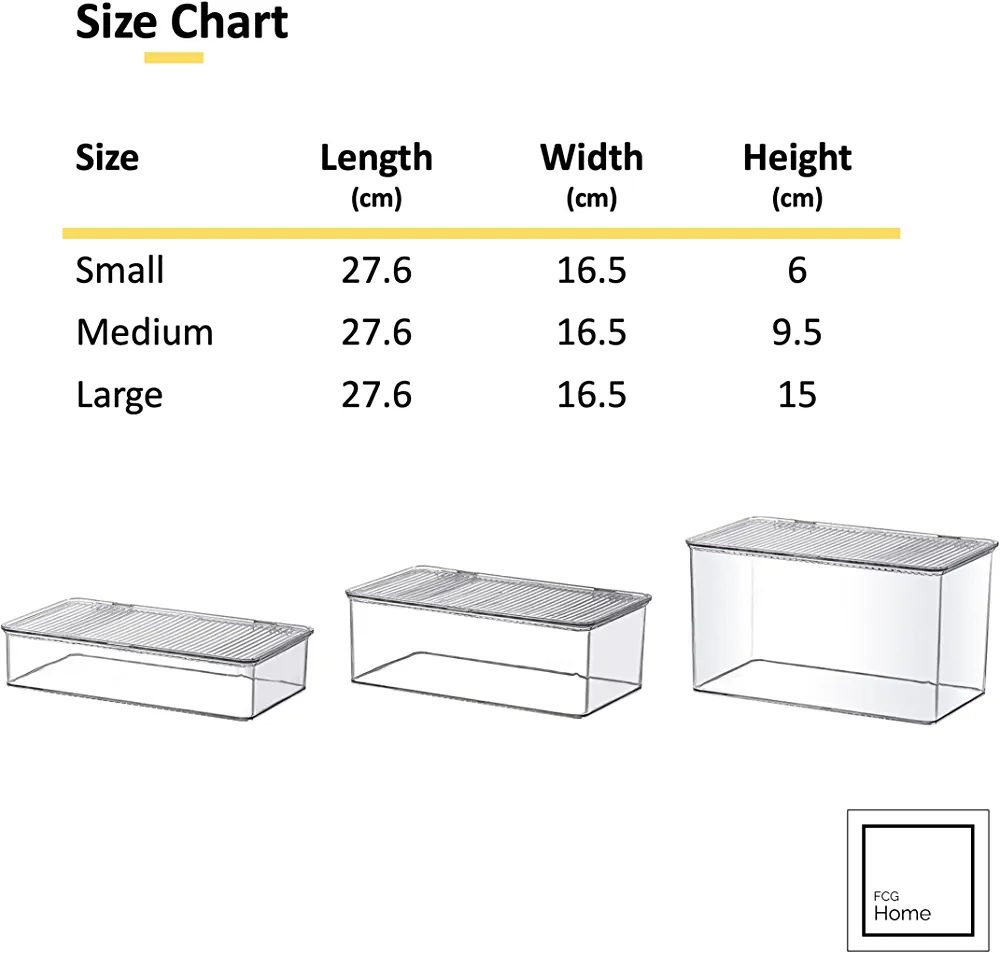 The FCG Home Clear Plastic Fridge Box with Lid is the perfect storage solution for your fridge, pantry, kitchen, or bathroom. This set includes two large boxes that are made of high-quality, clear plastic, allowing you to easily see the contents inside. The boxes come with lids that securely snap on, keeping your items fresh and protected from spills and odors. The versatile design of these storage bins makes them ideal for storing a variety of items, such as fruits, vegetables, snacks, condiments, toiletries, and more. The compact size of the boxes allows them to fit easily in your fridge or pantry, maximizing your storage space. Keep your home organized and clutter-free with the FCG Home Clear Plastic Fridge Box with Lid.