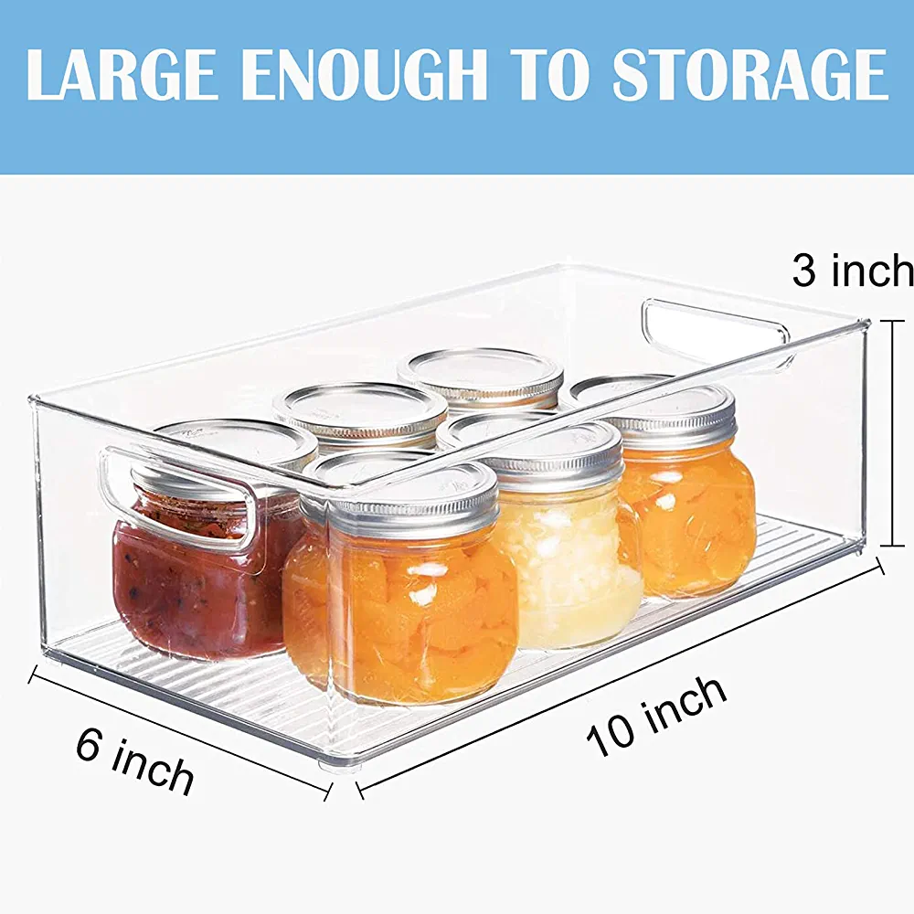 Made from durable PET plastic, these bins are not easy to break and have built-in handles that allow you to easily pull items out and select what you need without having to move everything. The clear design makes it easy to find what you are looking for, and they are versatile enough to fit easily in your pantry, cabinets, or even under the sink. These bins are not dishwasher safe, so it is recommended to clean them by hand with mild soap and warm water.