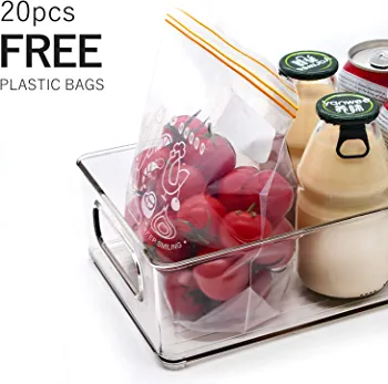 | nameOriginal | Stackable Refrigerator Organizer Bins, 6 Pack Clear Kitchen Organizer Container Bins with Handles and 20 PCS Free Plastic Bags for Pantry, Cabinets, Shelves, Drawer, Freezer – Food Safe, BPA Free 10"L |