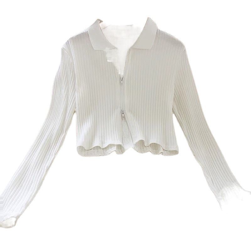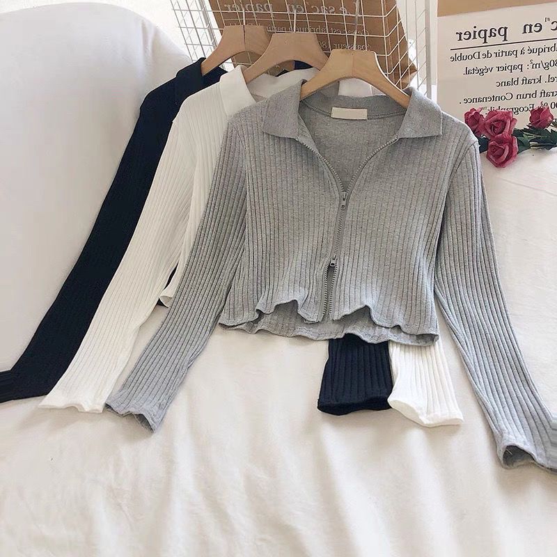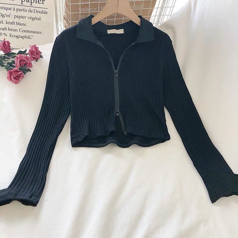 Clearance Girl's Autumn Solid Color Cardigan Lapel Double Zipper Long Sleeve T-Shirt Cardigan New Slim-fit Top All-match Trendy