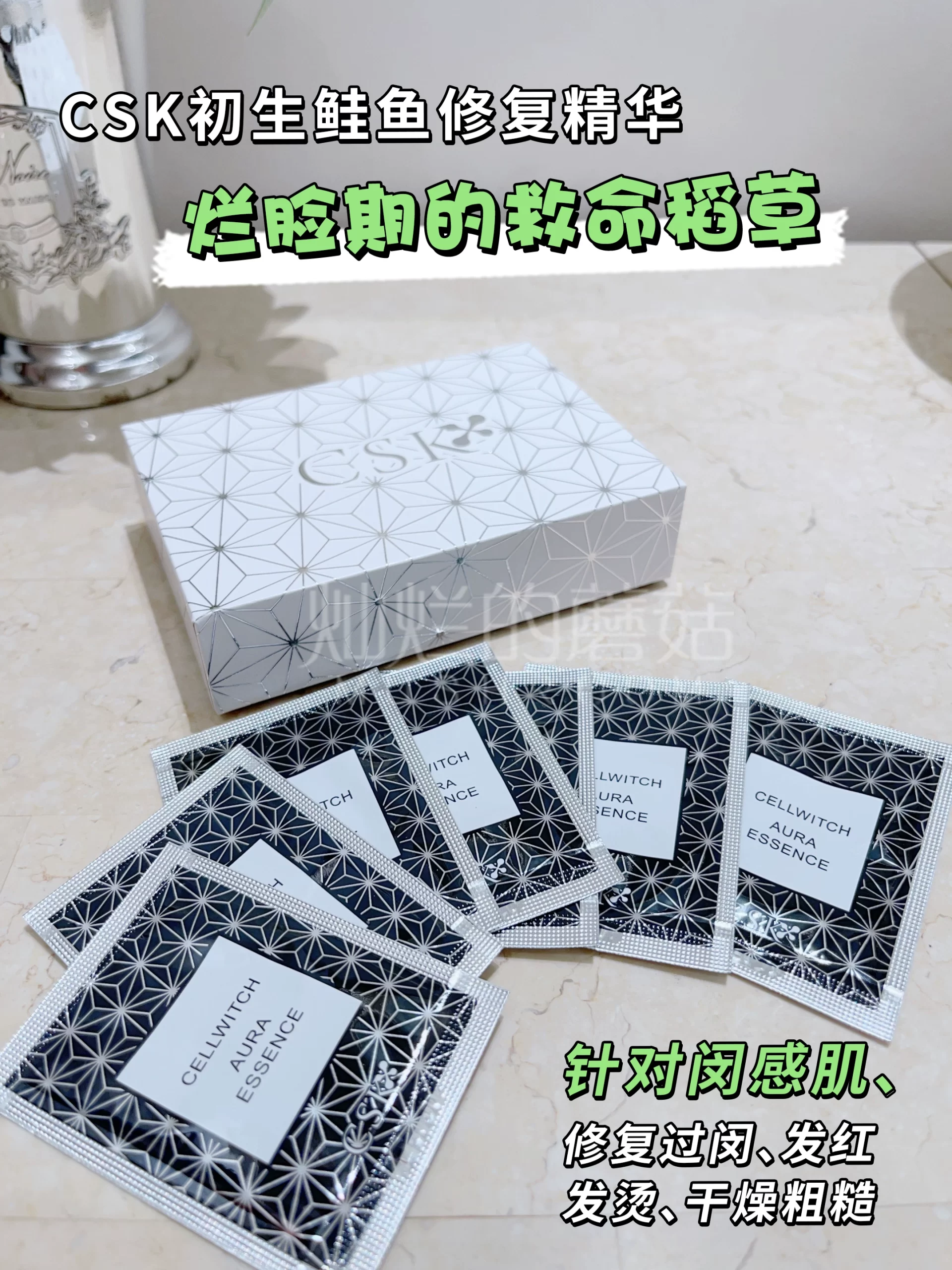 | nameOriginal | Clearance Japanese CSK Fresh Salmon Repair Essence 30 packs to improve sensitive red blood cells, dryness and damaged barrier |