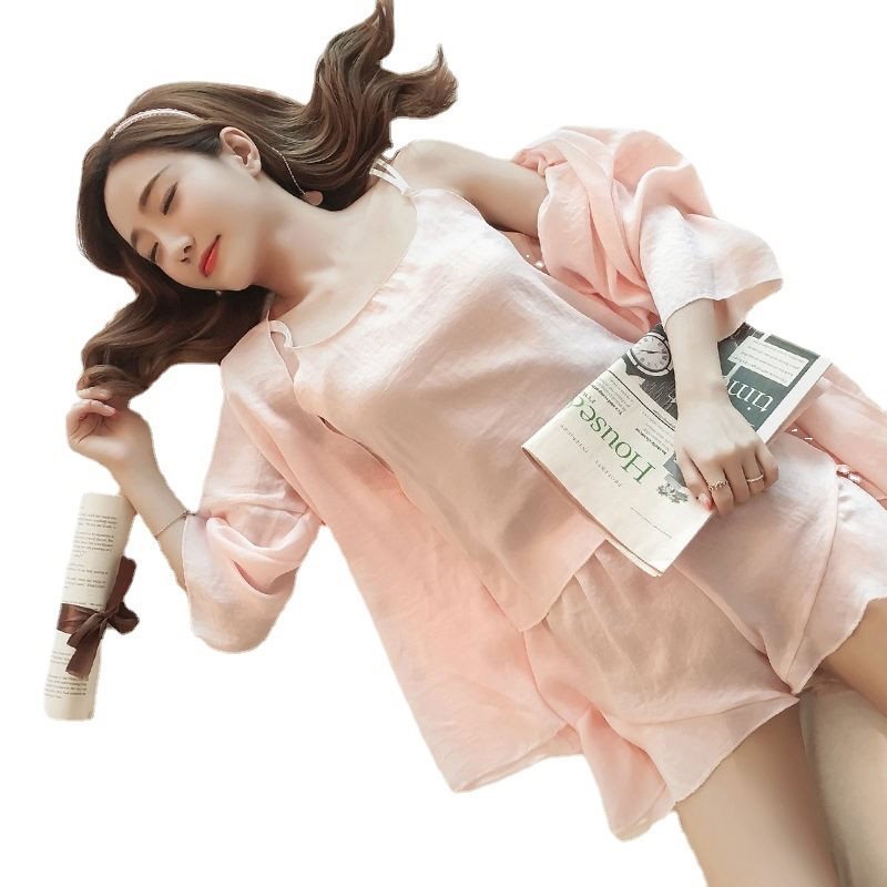 | nameOriginal | Clearance Promotion Big Brand Discount Pajamas Women's Summer Ice Silk Sexy Korean Style Silk Short Sleeve Sling Summer Home Clothes |