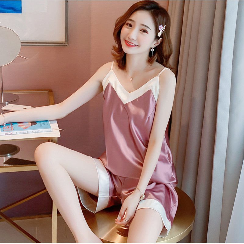 Clearance Promotion Big Brand Discount Pajamas Women’s Summer Ice Silk Thin Women’s Sexy Sling Two-piece Home Clothes