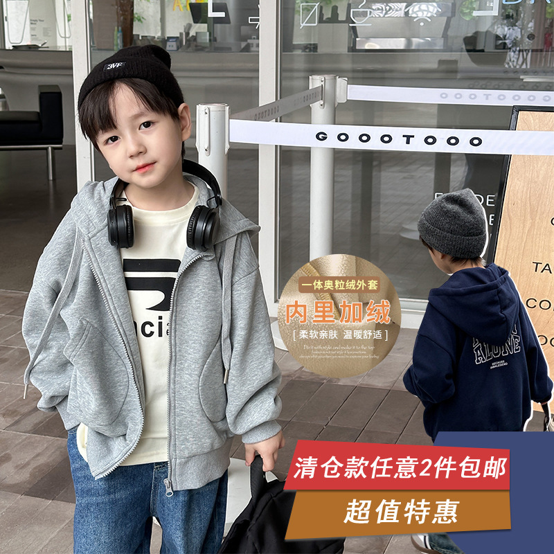 [Clearance sale] children’s handsome sweater boys and girls 2023 autumn and winter composite Olympic fleece hooded cardigan sweater