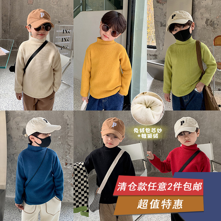 | nameOriginal | [Clearance Sale] Children's Thickened Rabbit Fleece Core-spun Yarn Half Turtleneck Baby Silver Fox Fleece Base Shirt |