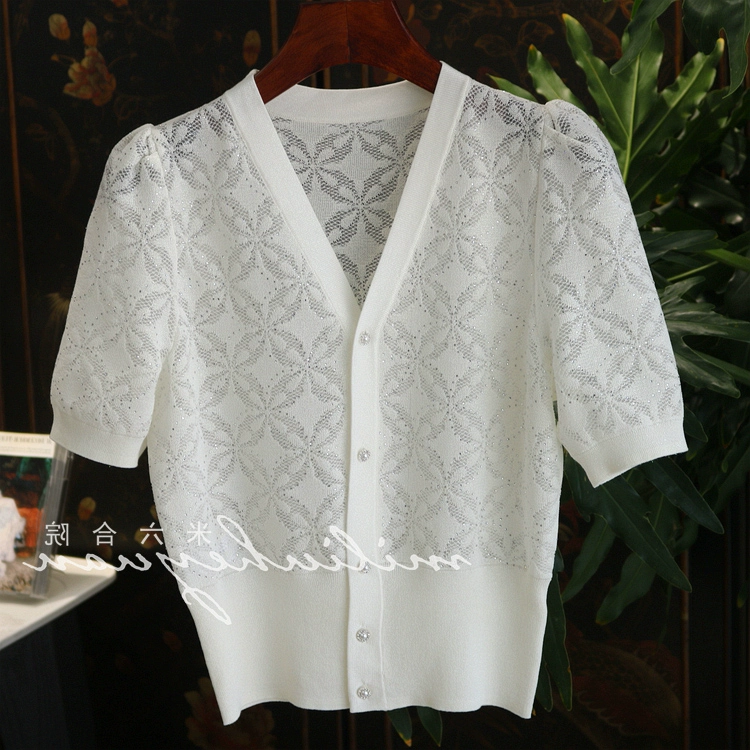 | nameOriginal | Clearance sample hollow pearl button V-neck knitted cardigan |