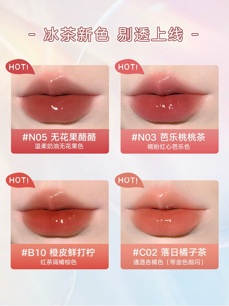 | nameOriginal | [Clearance] Tangerine Ice Tea Lip Glaze Mirror Light Mirror Lipstick juduo water light mist N05 tea jelly lip jelly glass |