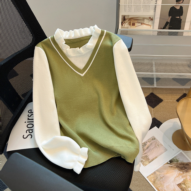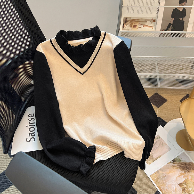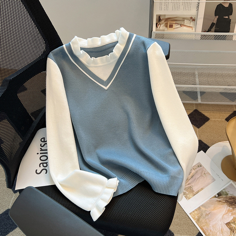 | nameOriginal | Clearance to pick up leaks ~ counter to withdraw foreign trade spring and autumn bottoming sweater top women's fake two-piece doll collar sweater |
