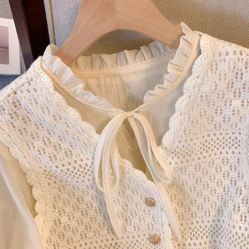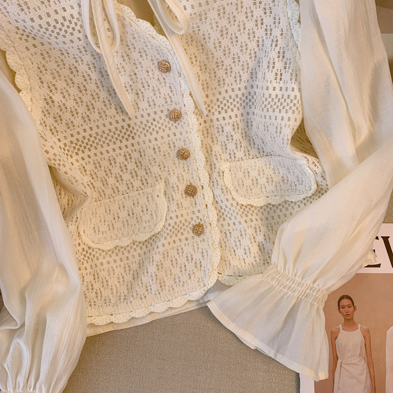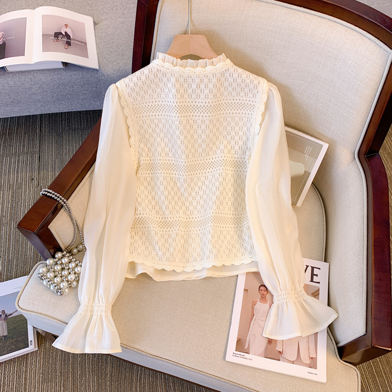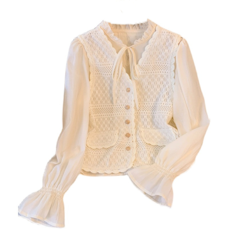 | nameOriginal | Clearance to pick up leaks ~ special counter to withdraw foreign trade spring and autumn French wooden ear two-piece waistcoat long sleeve shirt top women |