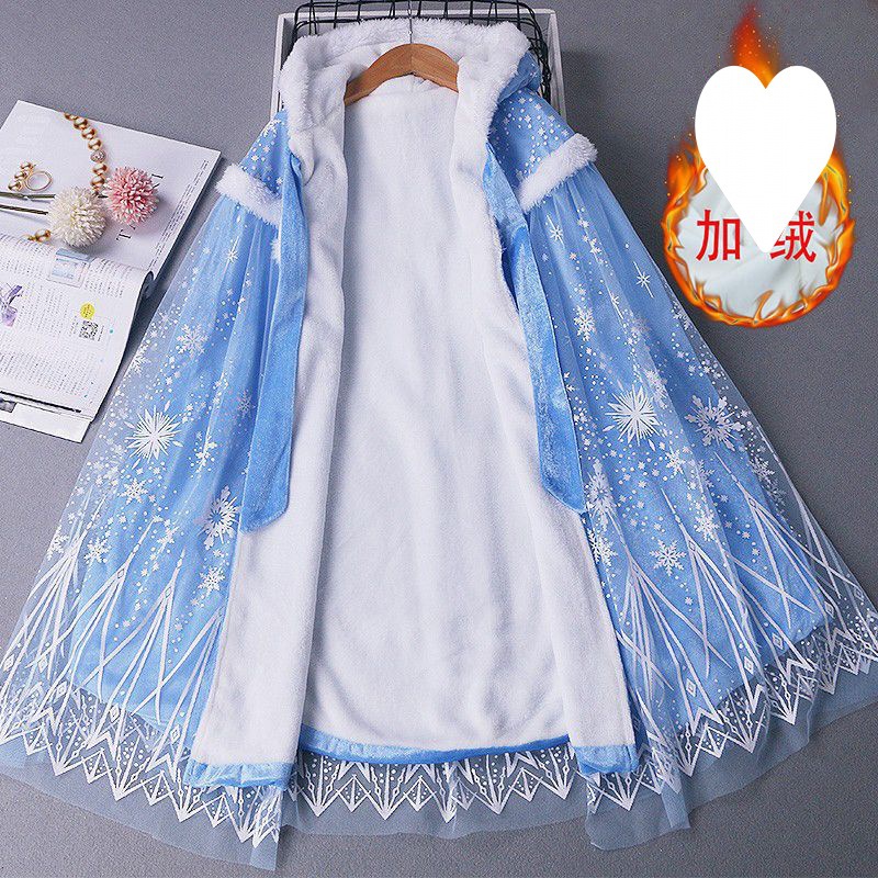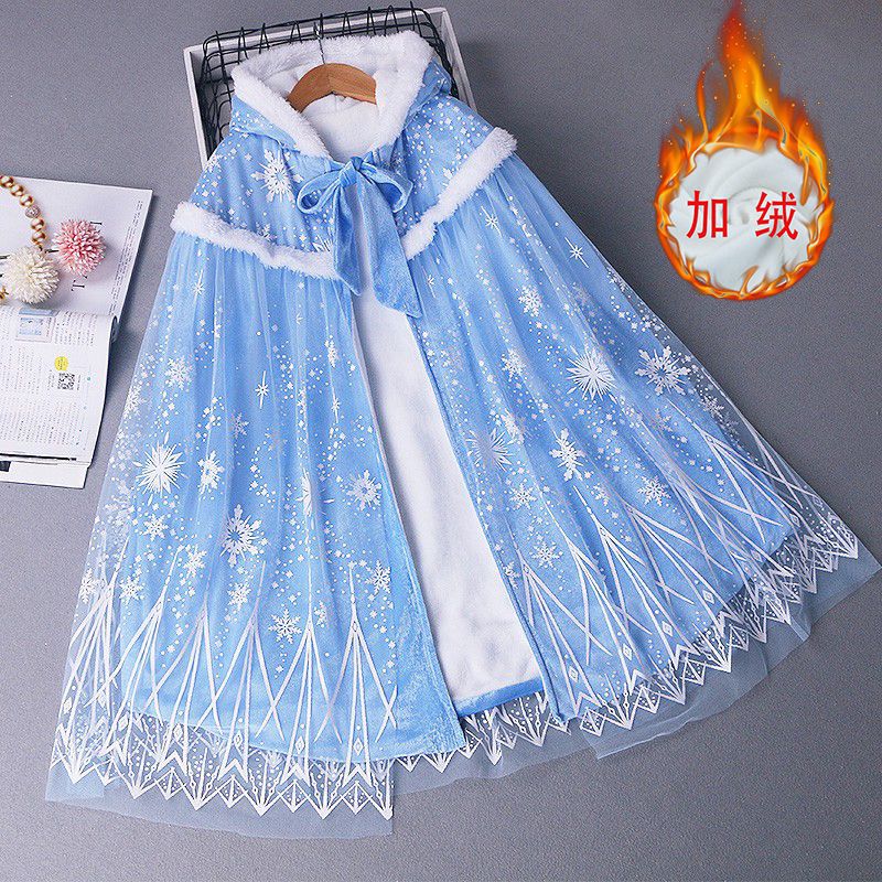 | nameOriginal | Cloak children's princess cloak autumn and winter plus velvet windproof princess new hat outside the fabric good thing a generation of hair |