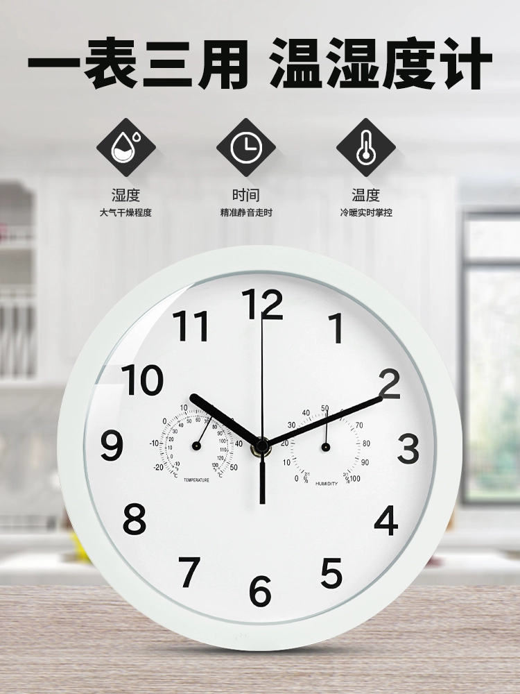 Clocks, living room, home wall clock, bedroom, silent wall hanging, creative quartz clock, creative fashion, punch-free thermometer and hygrometer