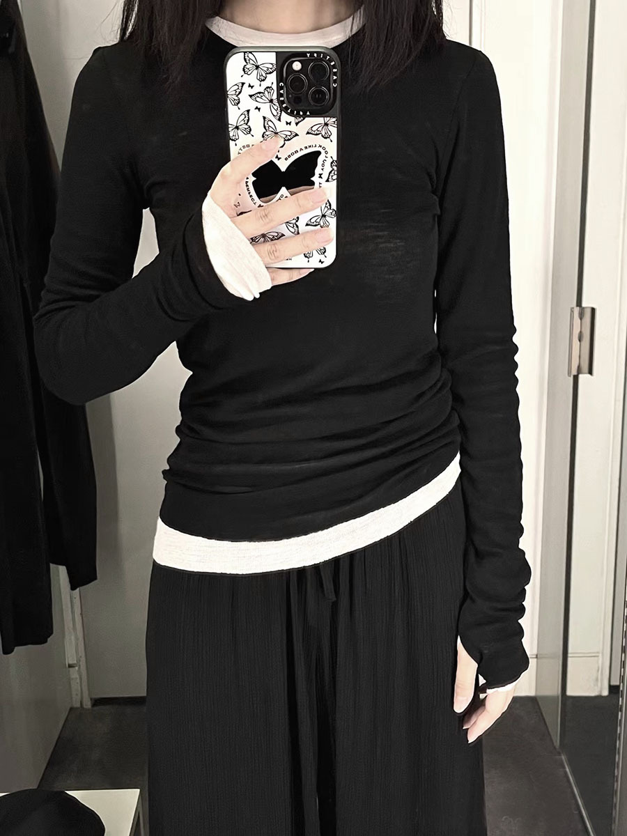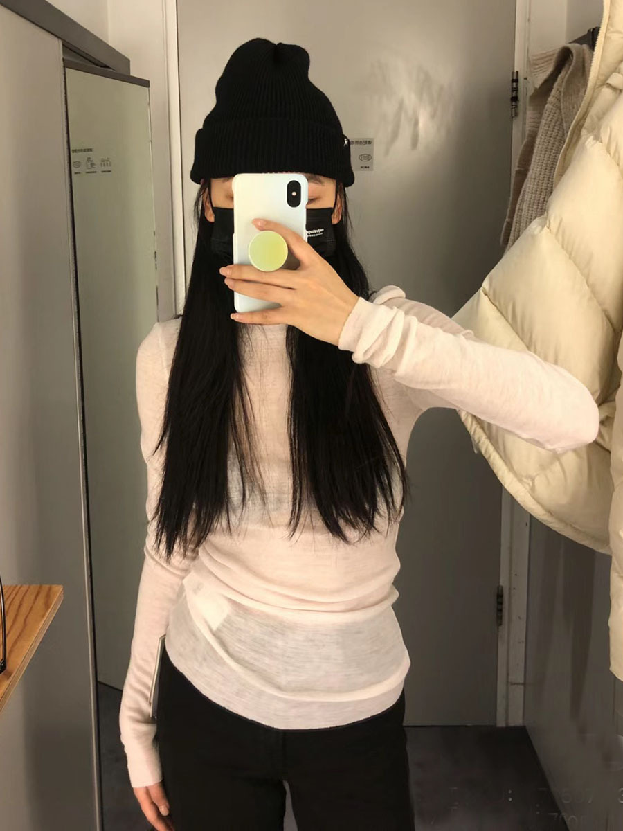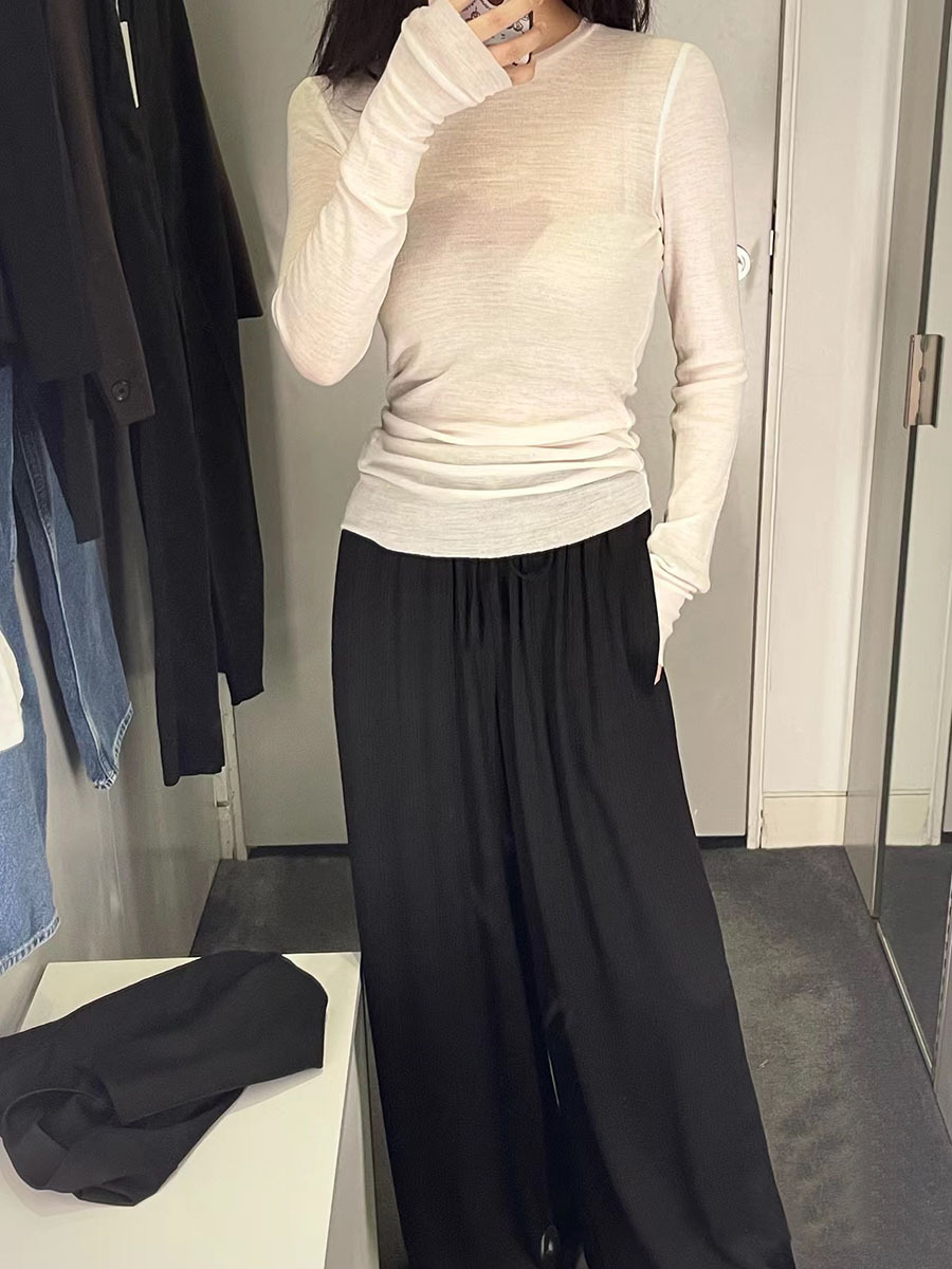 | nameOriginal | Closed Eyes Tencel acetate long-sleeved T-shirt evergreen basic stacked slightly transparent bottoming shirt |
