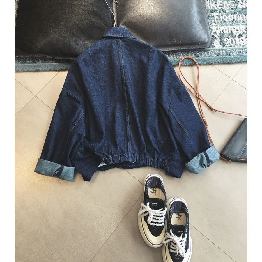 | nameOriginal | Clothing record niche design sense stand cut flower bud pleated drop shoulder profile Denim coat |