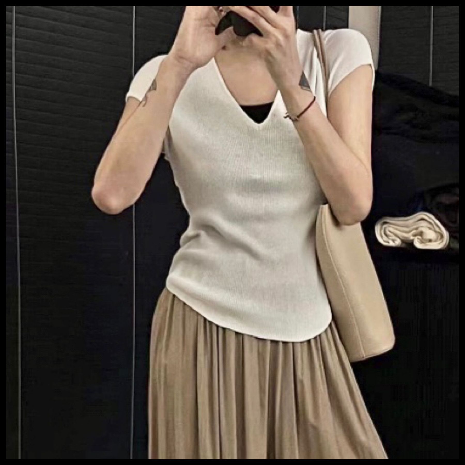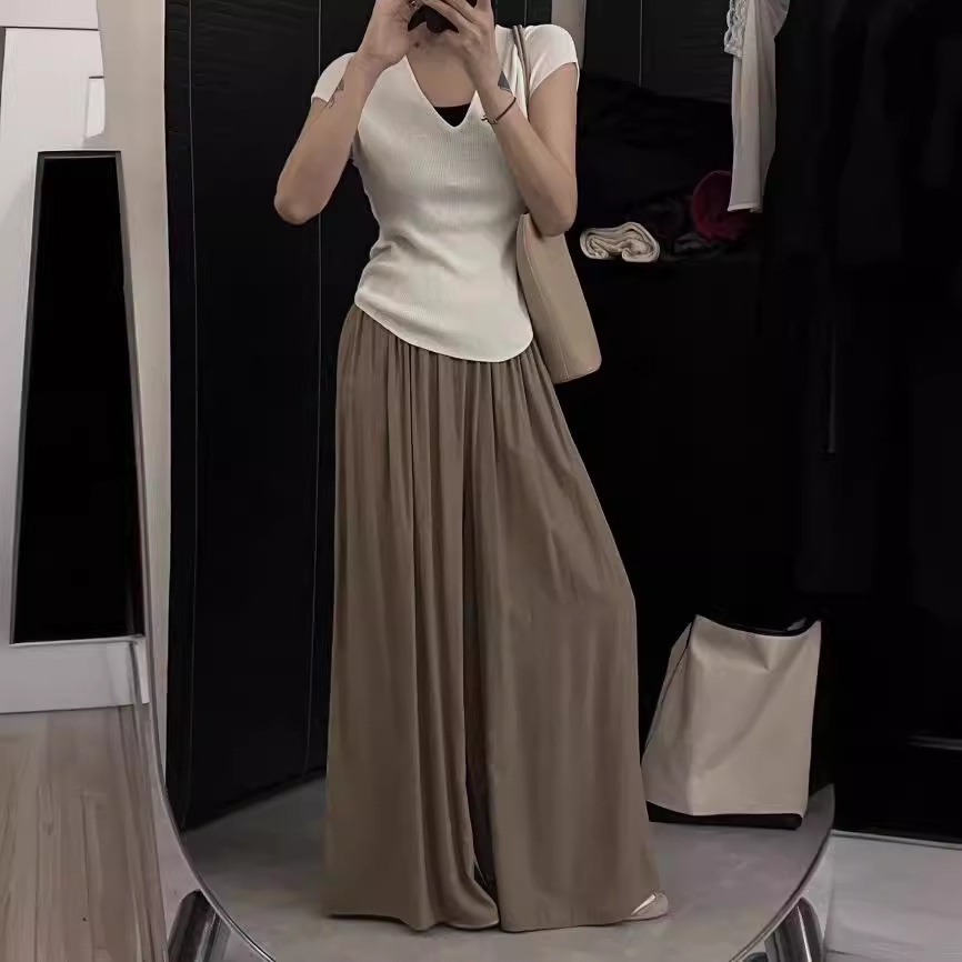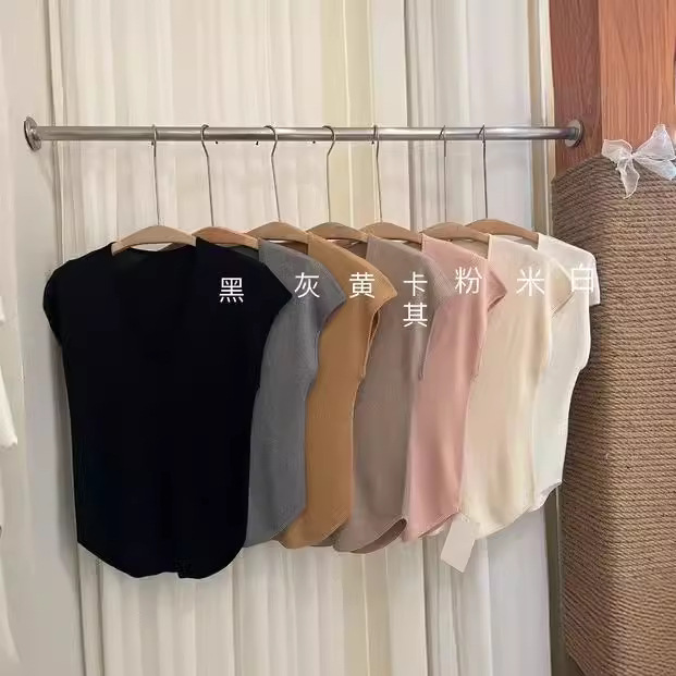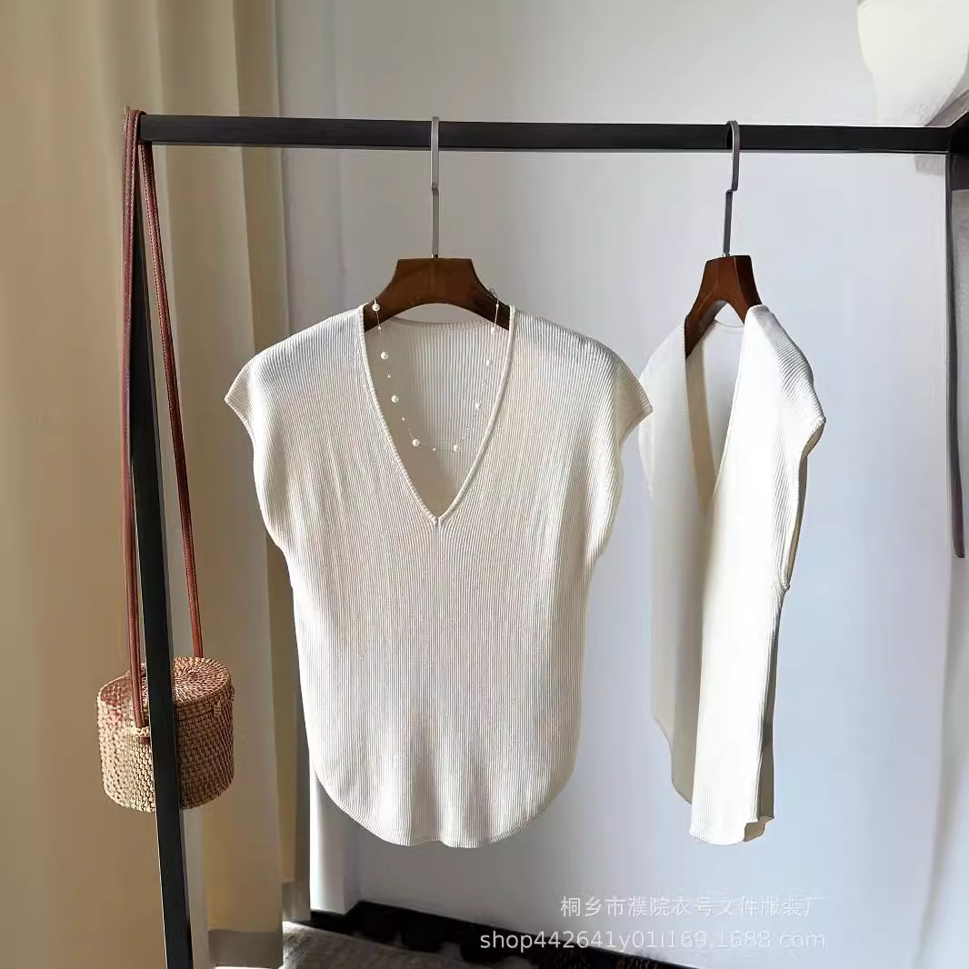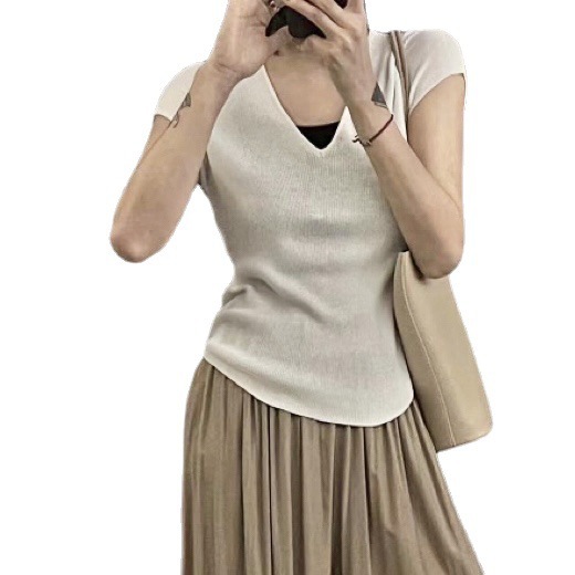 | nameOriginal | Clothing Size Homemade Niche Simple V-neck Elegant Short-sleeved T Curved Hem Elastic Base Shirt 23 Summer New Women |
