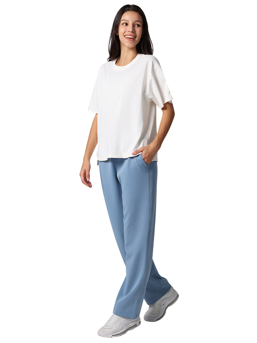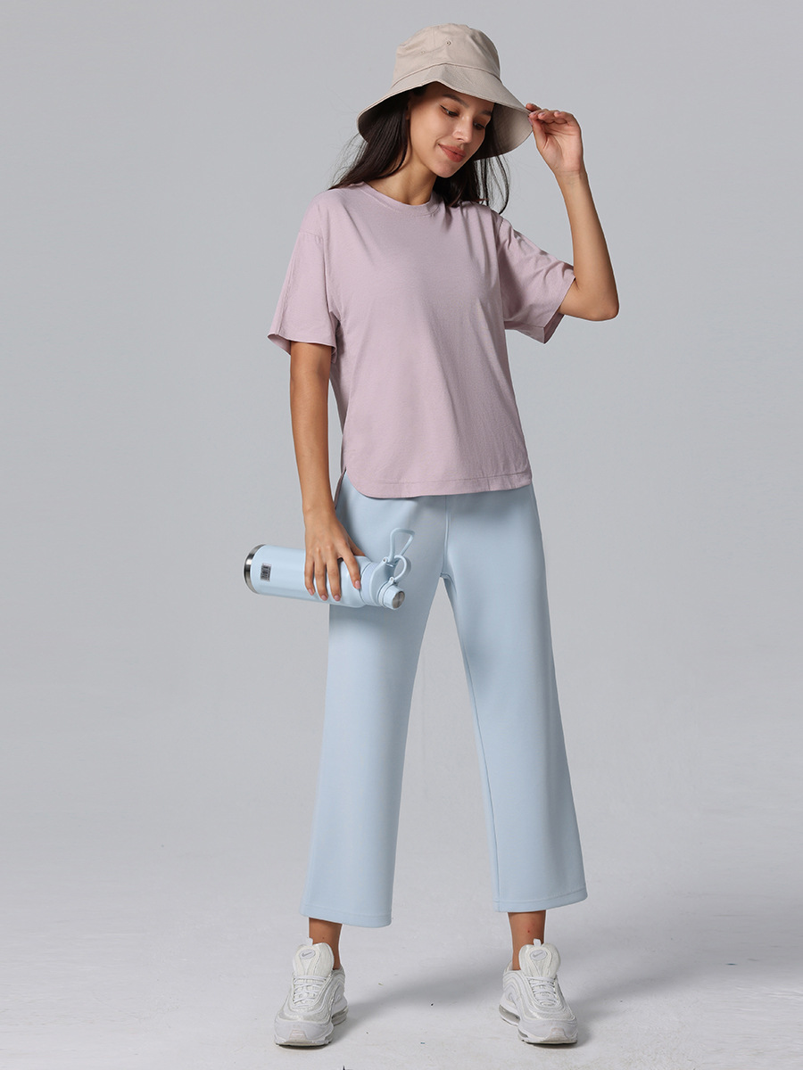 | nameOriginal | Cloud sense round neck short sleeve t-shirt women's split loose top thin casual all-match solid color cool sense sports workout clothes |
