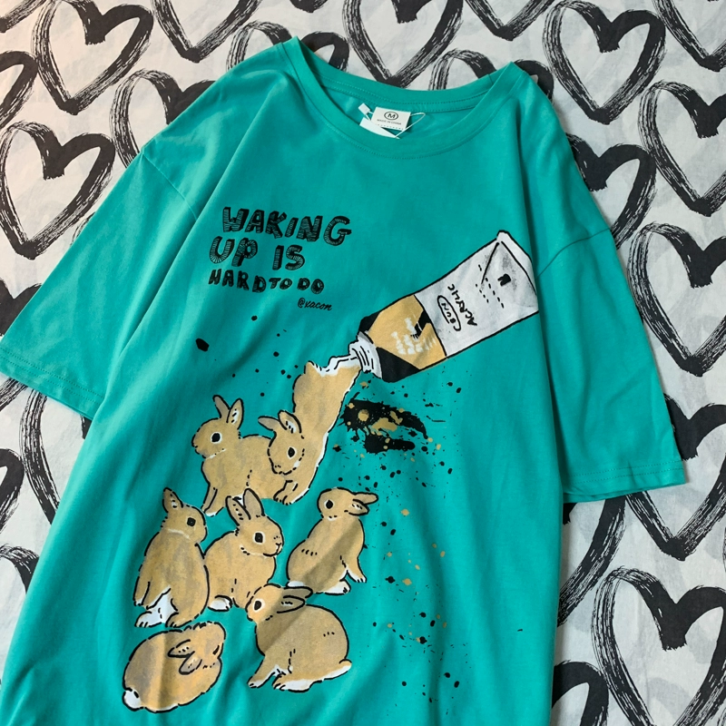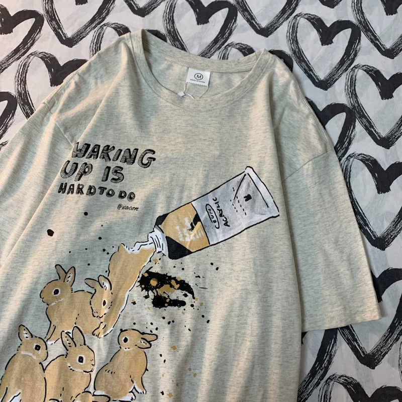 CMYJN short -sleeved Harajuku round neck TEE rabbit print