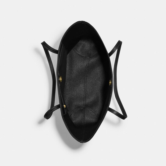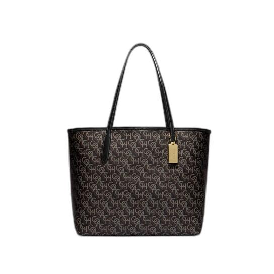 This product features a combination of printed coated canvas and smooth leather material. It comes with an inside zip pocket and a snap closure for secure storage. The handles have a 10-inch drop, making it easy to carry. The dimensions of the product are 13 inches in length, 11.5 inches in height, and 6.25 inches in width. The style number for this product is CF342.