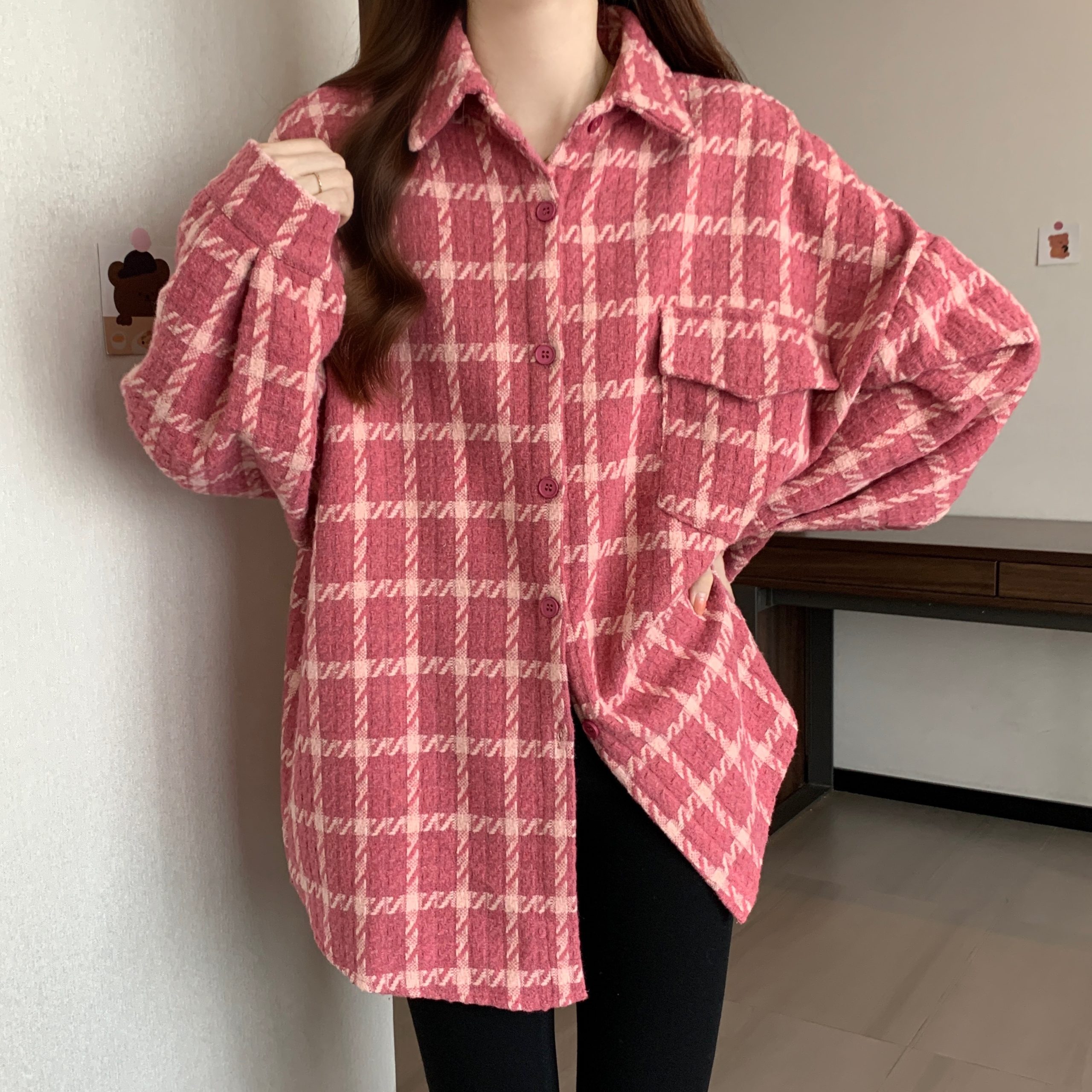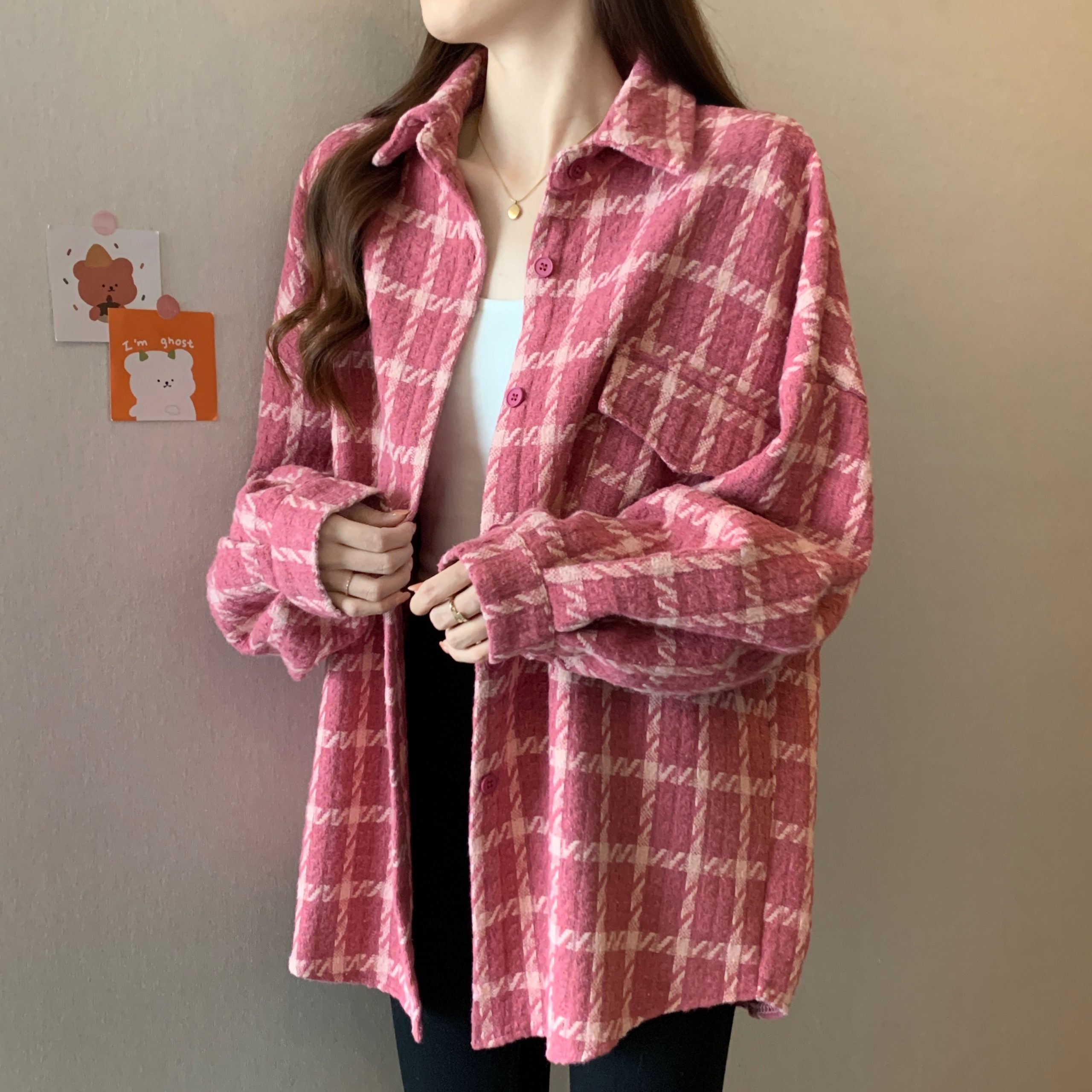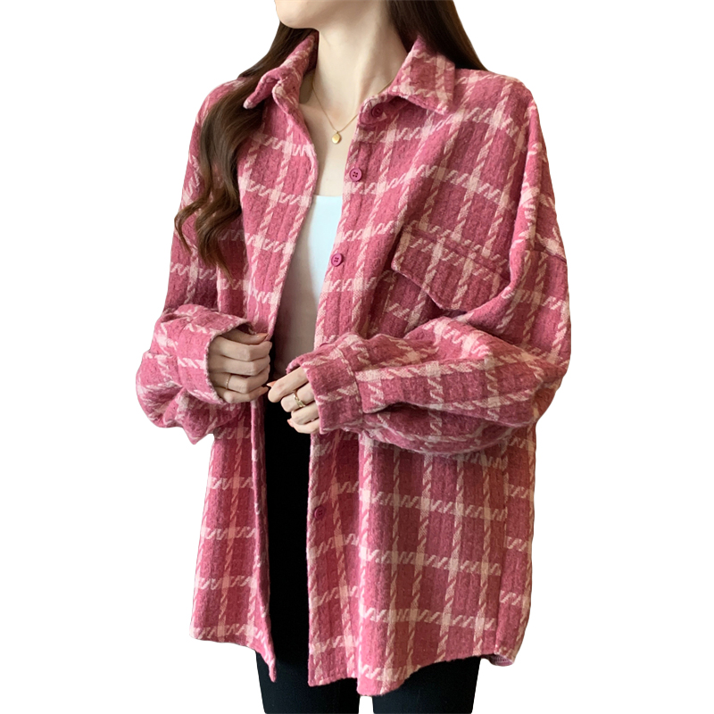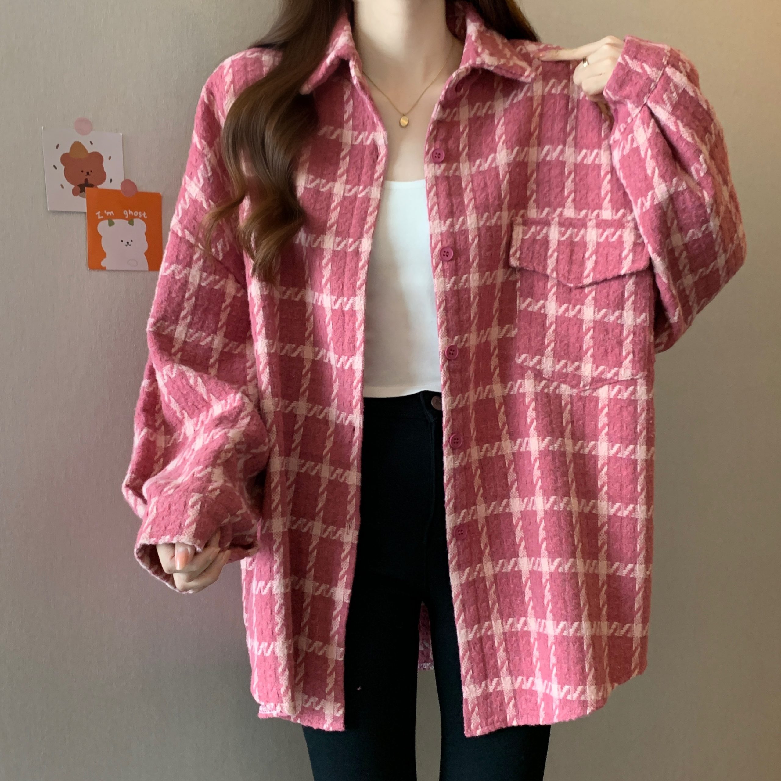 | nameOriginal | Coat 2024 Spring and Autumn New Large Size Women's Clothing Chubby Girls Mid-length Chic Plaid Dopamine Woolen Pink Top |