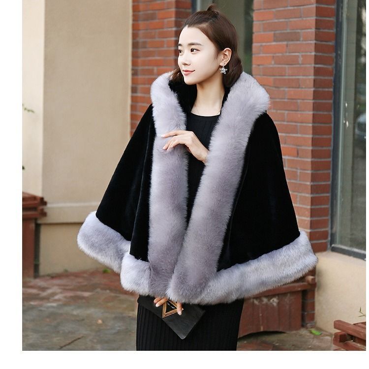 Coat Women's New Winter Imitation Fur Shawl Pocket Short Haining Imitation Fox Fur Thickened Hooded Coat