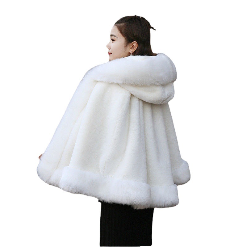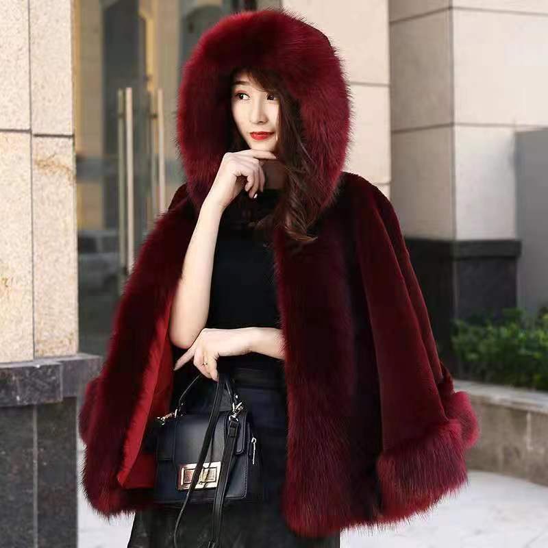 Coat Women’s New Winter Imitation Fur Shawl Pocket Short Haining Imitation Fox Fur Thickened Hooded Coat