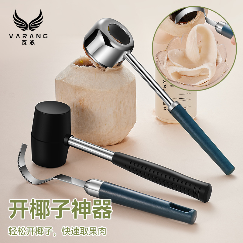 | nameOriginal | Coconut opener new household lid opener artifact tool hole opener stainless steel coconut three-piece set Wholesale |