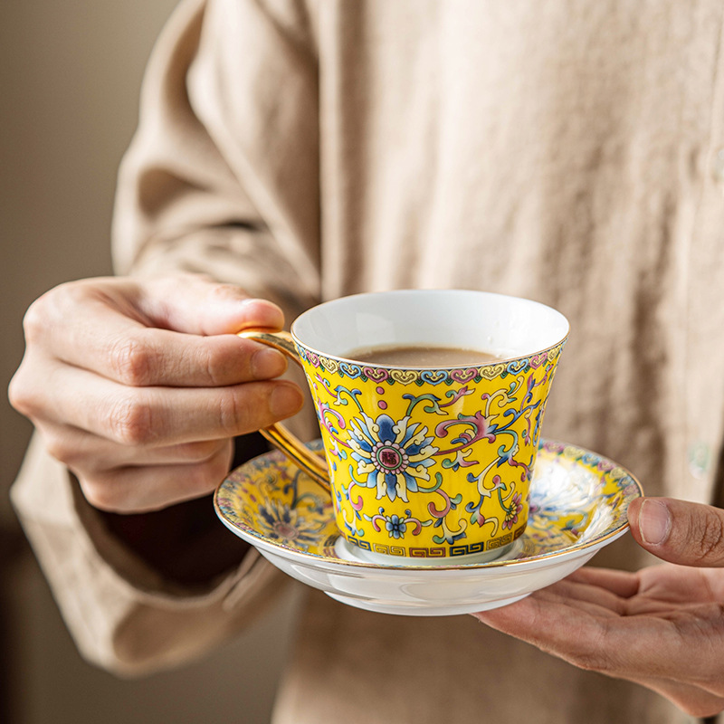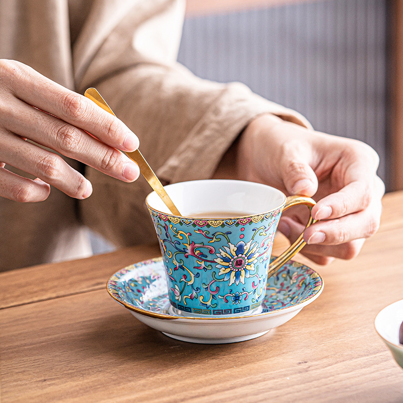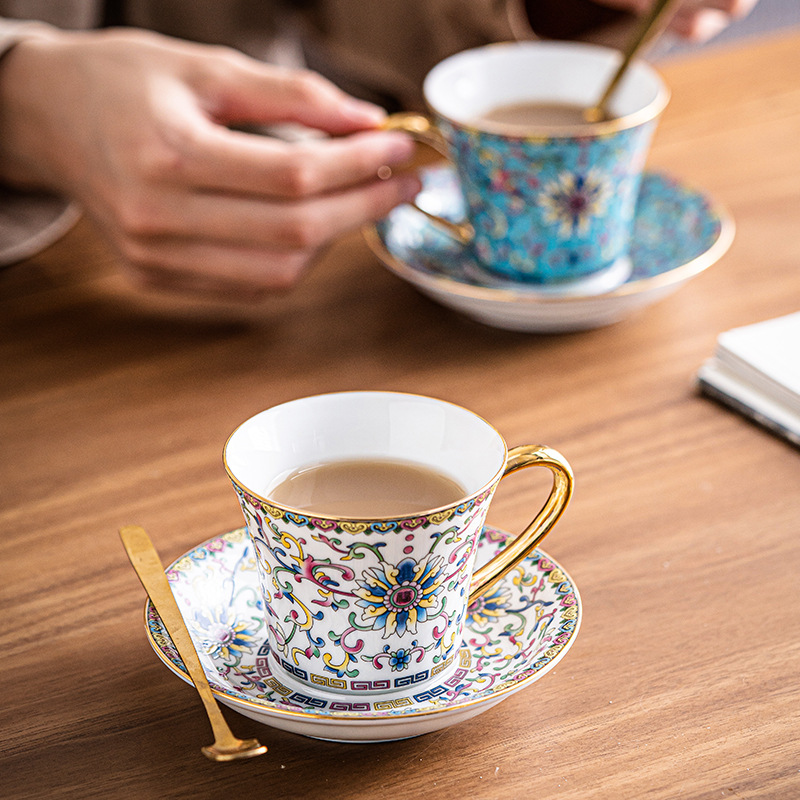 | nameOriginal | Coffee Cup Saucer suit Ceramic High Color Value Enamel Color Fine Office Afternoon Tea Palace Style Light Luxury Flower Tea Cup |