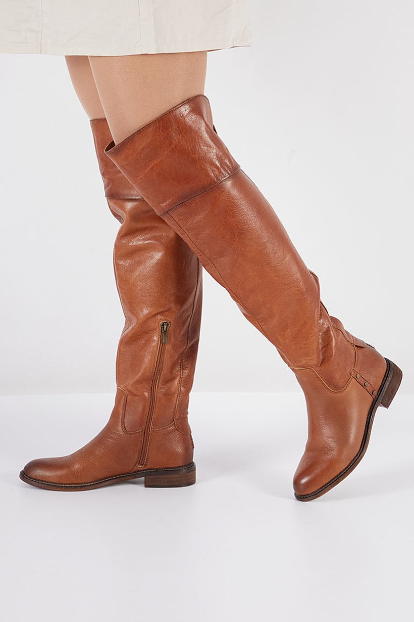 Cognac Leather Tall Over-The-Knee Boots for Women.