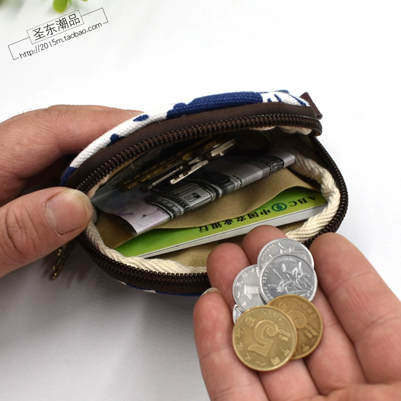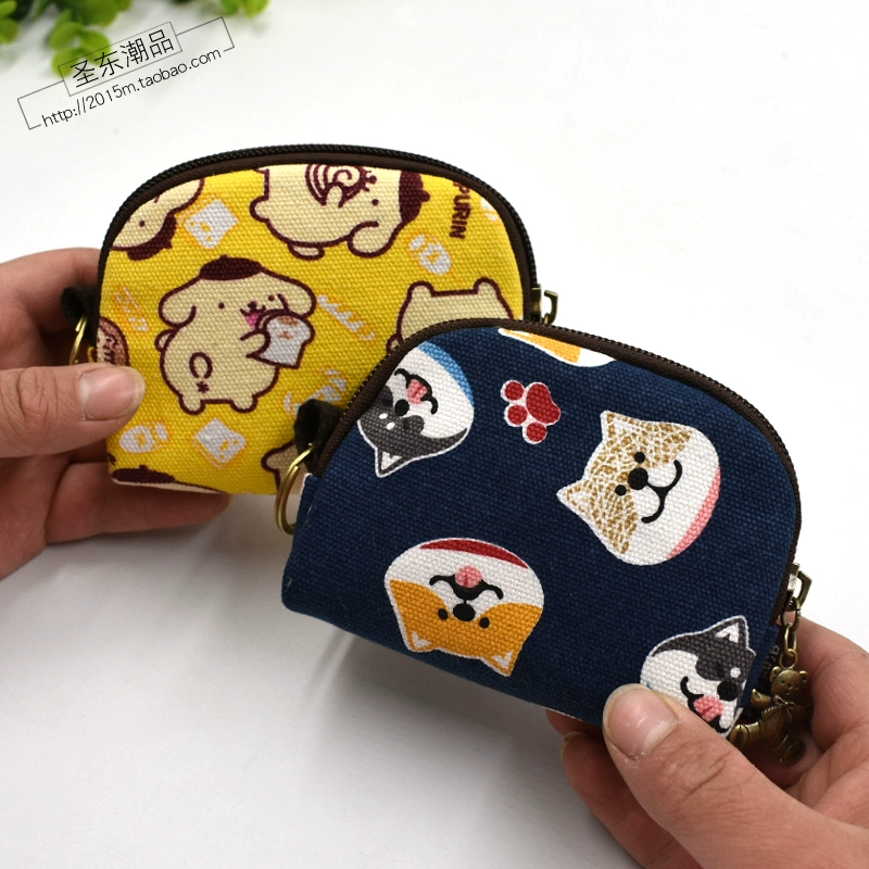 Small purse female mini Korean INS canvas small wallet zipper key bag cute cloth bag coin bag
