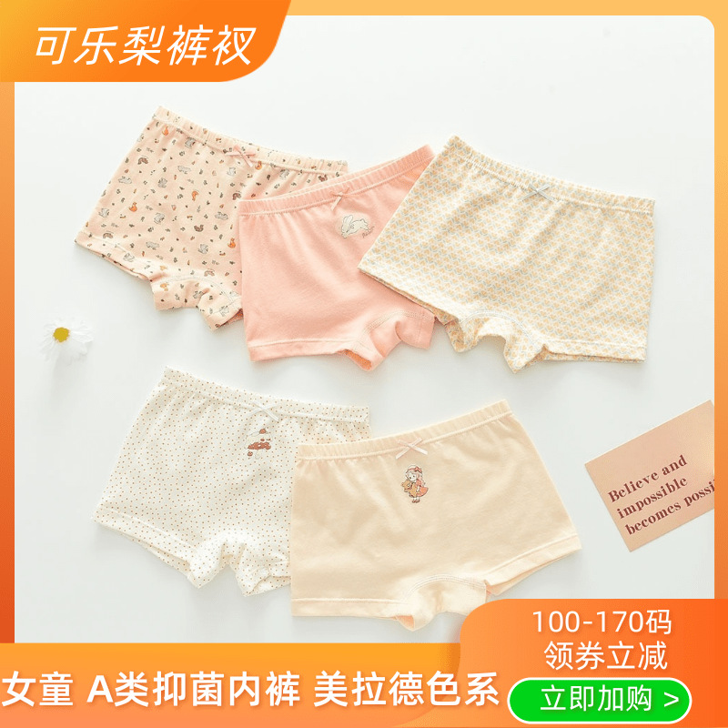 | nameOriginal | Coke Pear Girls' Underwear Pure Cotton Boxer Baby's Boxer Shorts Medium and Big Children's Maillard Color Antimicrobial Underwear Head |