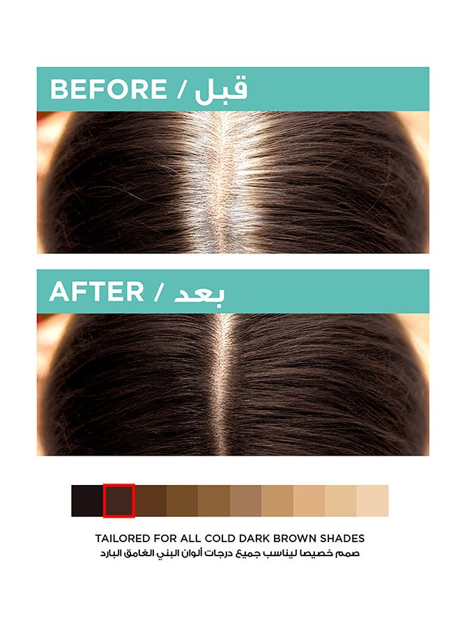 The Magic Retouch Instant Root Concealer Spray in Cold Dark Brown is the perfect solution for those who want to cover up their gray roots or regrowth in between salon visits. This easy-to-use spray provides instant coverage that lasts until your next shampoo. The 75ml bottle is compact and easy to carry, making it perfect for on-the-go touch-ups. The cold dark brown shade is ideal for those with cool-toned hair and provides a natural-looking finish. Say goodbye to visible roots and hello to flawless hair with the Magic Retouch Instant Root Concealer Spray.