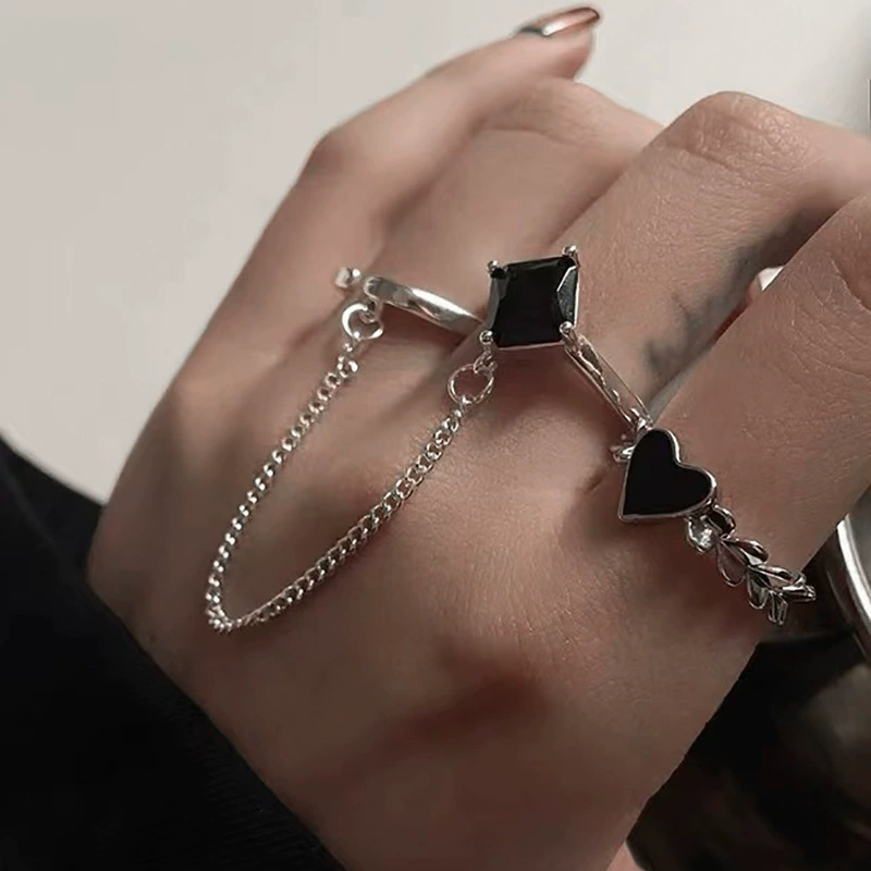 | nameOriginal | Cold style black square diamond ring combination women's chain |