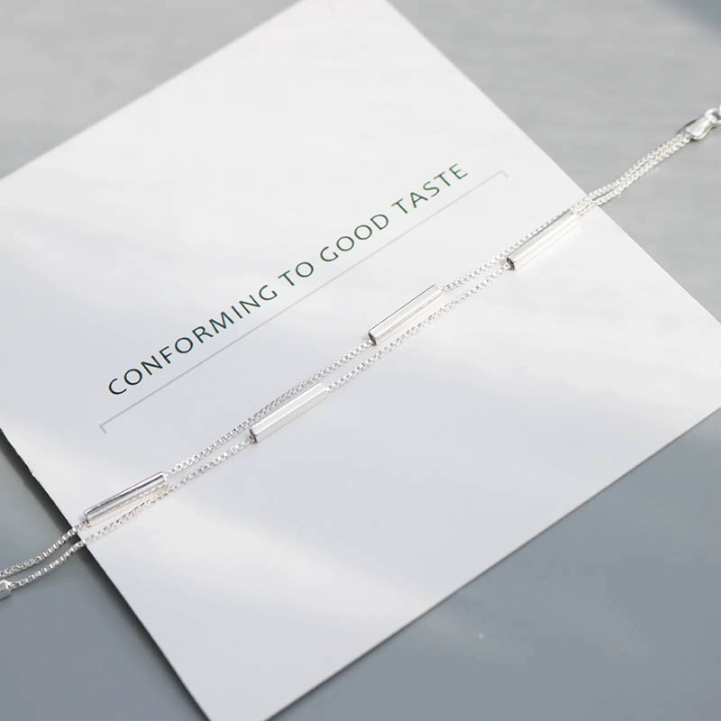 Cold style S925 sterling silver bracelet for women, Korean version, simple one-line bar-shaped round stick bracelet, forest style literary double layer jewelry