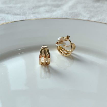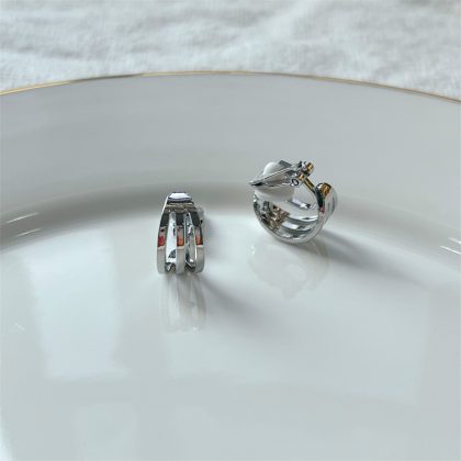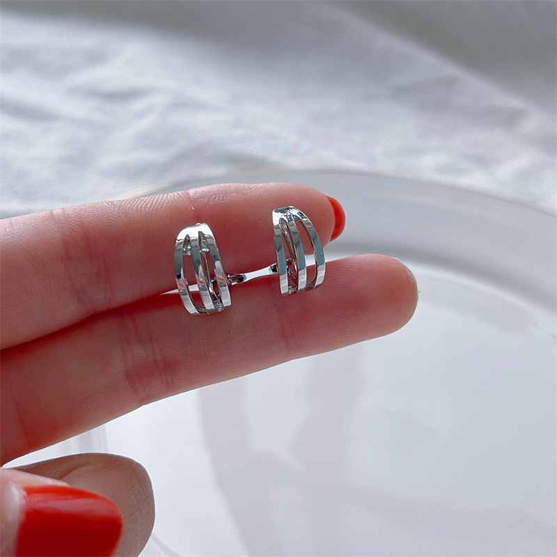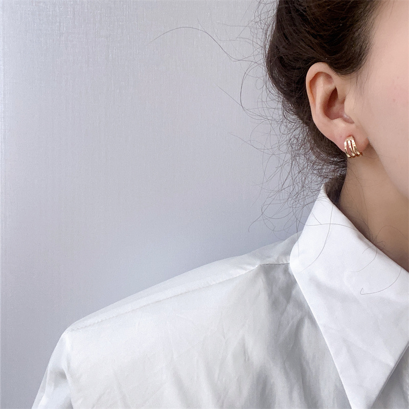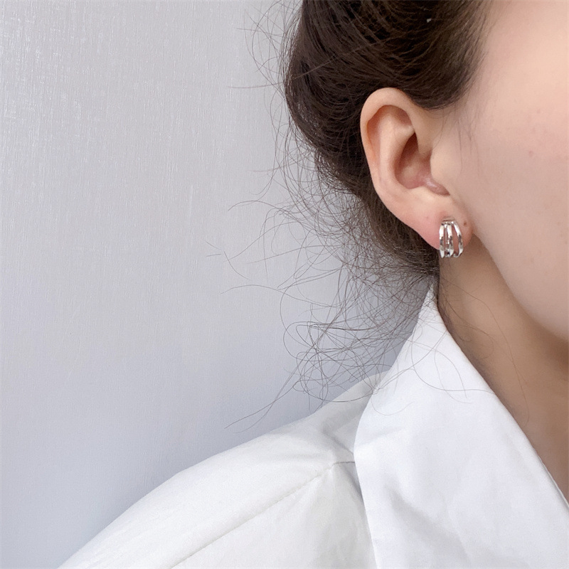 Cold Style Three-ring Circle Earrings Women’s Simple All-match Elegant High-end Ear Stud Retro Internet Celebrity Ear Clip