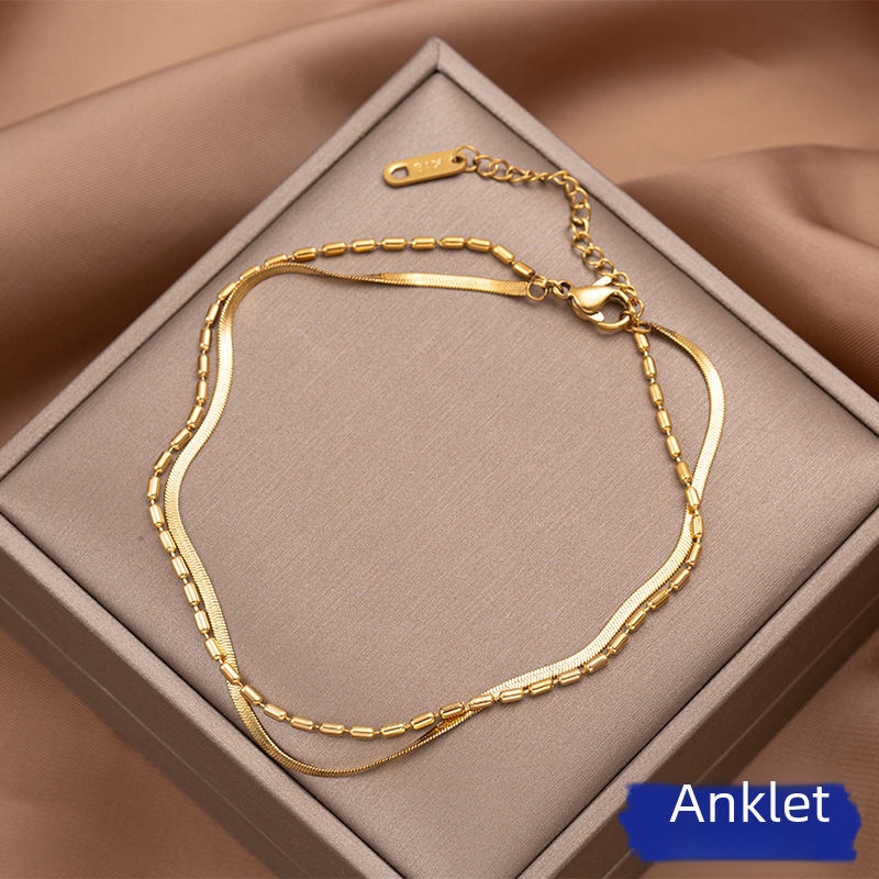 | nameOriginal | Cold Wind Double-layer Snake Bone Titanium Steel Anklet Women's Internet Popular Hot Leg Ring Jewelry Does Not Fade Women's Beach Accessories |