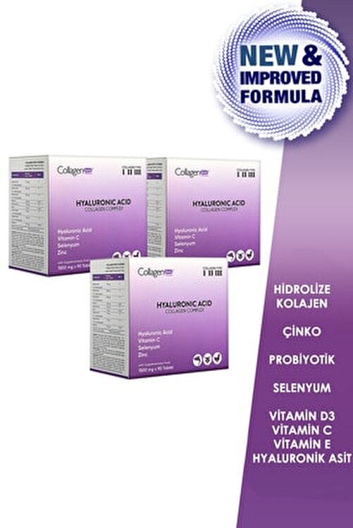 Hyaluronic Acid Fish, Cattle & Chicken Sourced Collagen Complex 1500mg 3 X 90 Tablets We have improved our efforts in this direction to give you a Higher Quality Product with a new packaging with a new developed formula. Recommendation for Use: It is recommended to take 3 tablets per day, morning, lunch and dinner after meals by adults 11 years of age and older. · Free of flavors and colorants. · Not medicines. It is not used for the purpose of preventing or treating diseases · Consult with your doctor during pregnancy and lactation and in cases of illness or drug use · Do not purchase cut or opened packaging in food supplement · Do not exceed the recommended daily serving. · Supplement foods cannot replace normal feeding · Store food supplements out of reach of children Your.