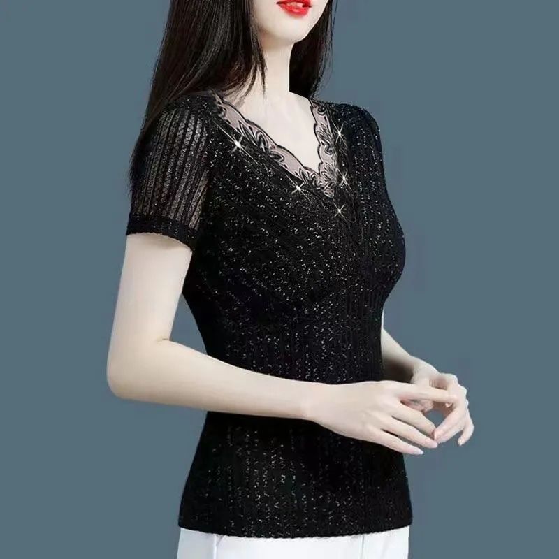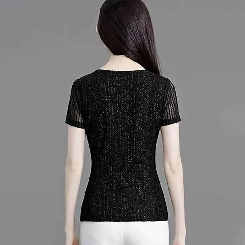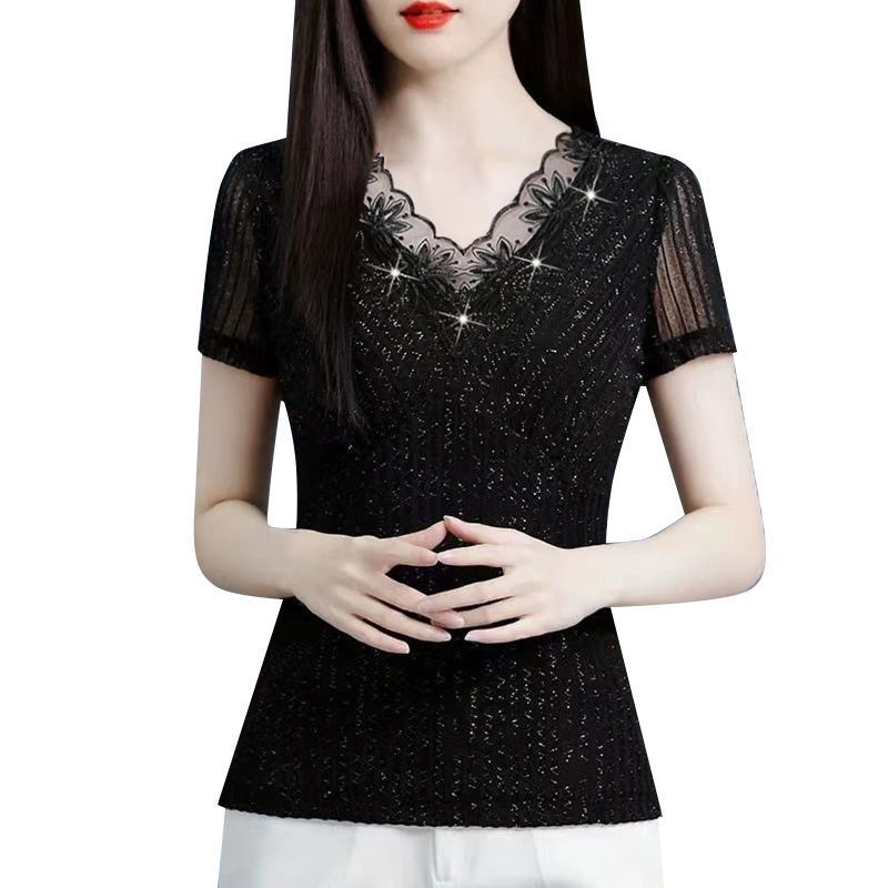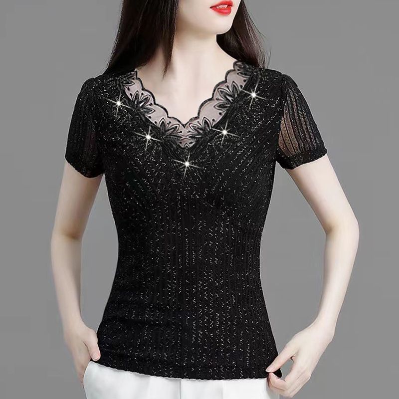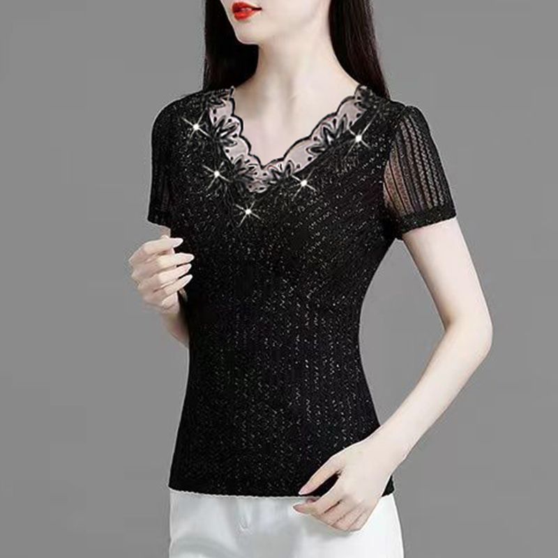 | nameOriginal | Collar Bright Silk Thin Outer Wear Summer New Style Lace Top Short-sleeved Western Style Slim-fit Small Shirt Slim-fit Elegant Top |