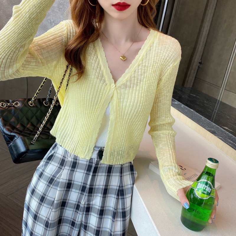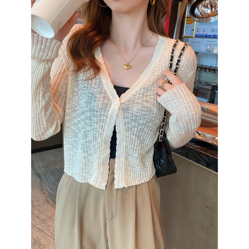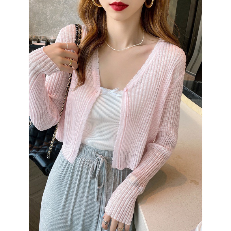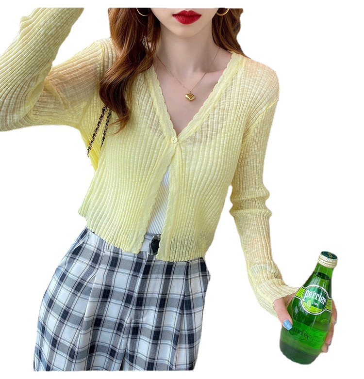 | nameOriginal | Collar Knitted Cardigan Women's Summer Thin Short Top Air-conditioning Shirt Shawl Wearing Ice Silk Long-sleeved Sunscreen Jacket |