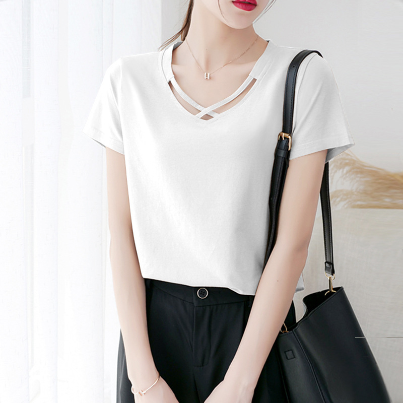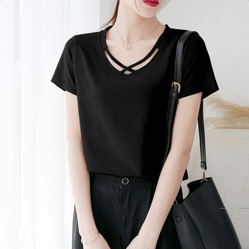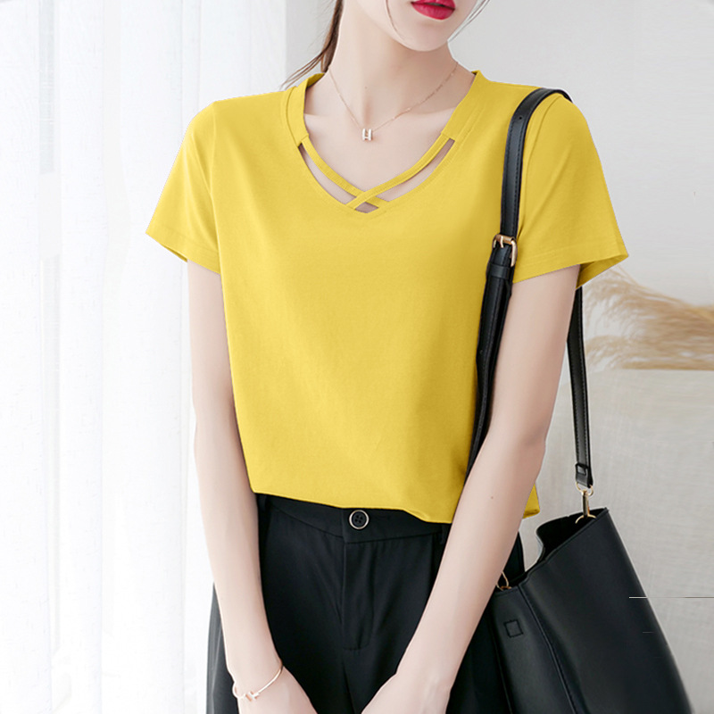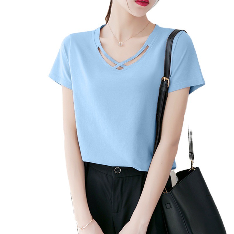| nameOriginal | Collar short-sleeved shirt women's 2023 summer new watch-out machine Korean cross collar solid color base shirt a generation of hair |