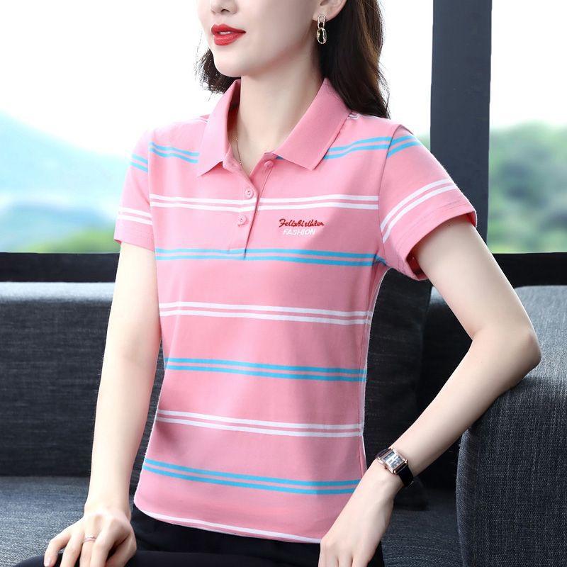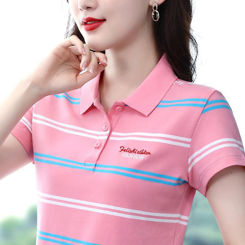 | nameOriginal | Collar Striped Polo Shirt Short-sleeved T-shirt Women's 2024 Summer New Korean Casual plus size Slim Base Top |