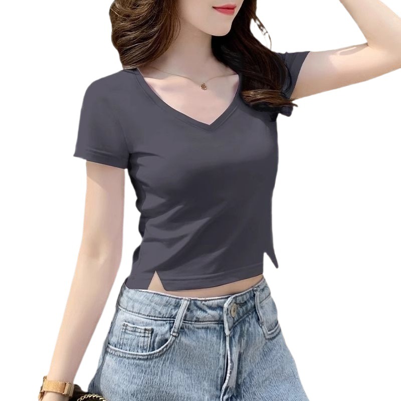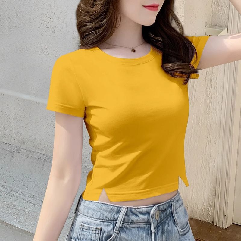 | nameOriginal | Collar T-shirt Women's Short-sleeved 2024 New Summer Small Split Design Slim-fit Slimming Short Cropped Top Trendy |