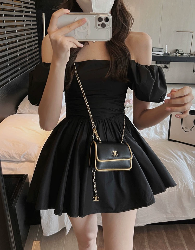 | nameOriginal | Collarbone One Shoulder Black Summer Princess Dress |