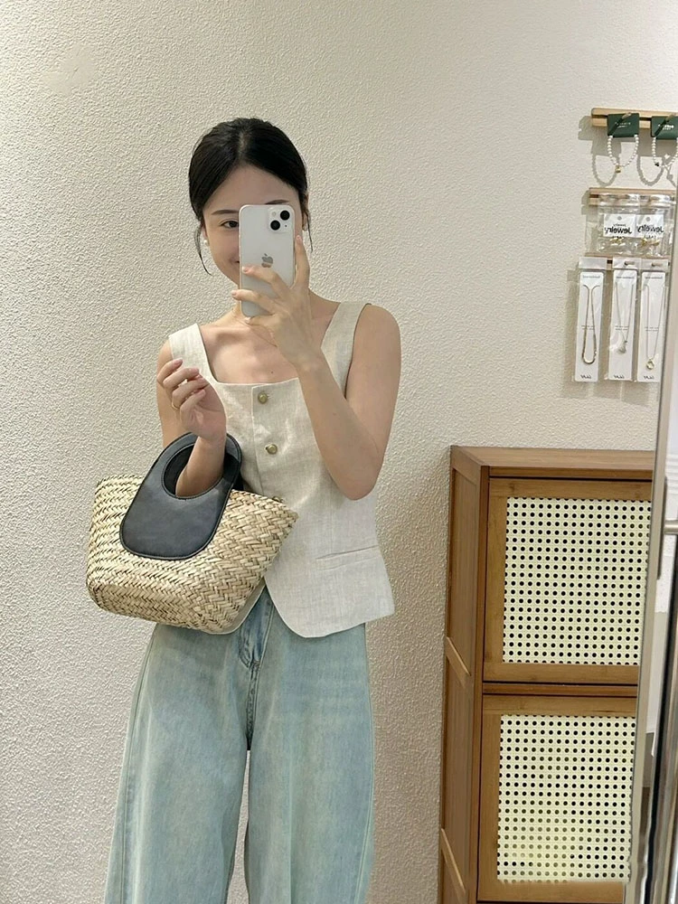 | nameOriginal | Collarbone Square Neck Fashionable Slim Camisole Top |
