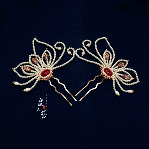 | nameOriginal | Collection of pearls, Hanfu hairpin, pair of hairpins, beads, flower hairpin, Song Dynasty costume headdress, fairy retro butterfly palace beads |