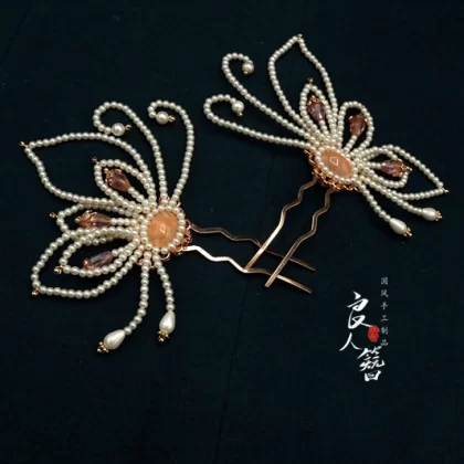 | nameOriginal | Collection of pearls, Hanfu hairpin, pair of hairpins, beads, flower hairpin, Song Dynasty costume headdress, fairy retro butterfly palace beads |