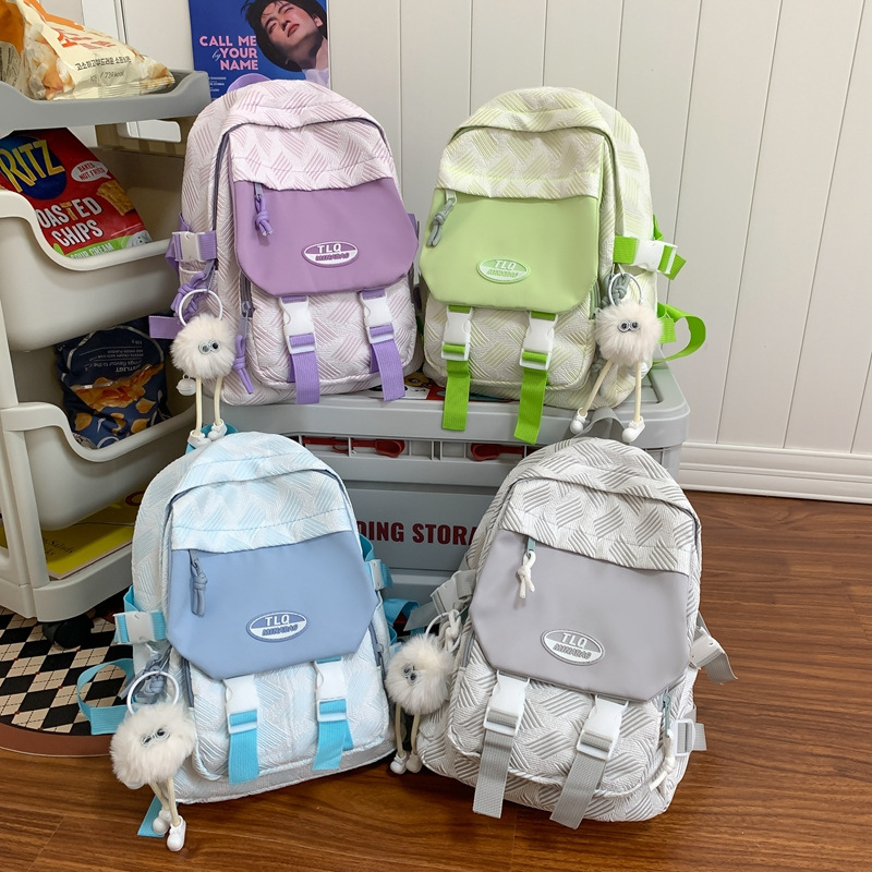 College student niche contrast color backpack schoolbag female junior high school student Korean high school student simple backpack fresh double back