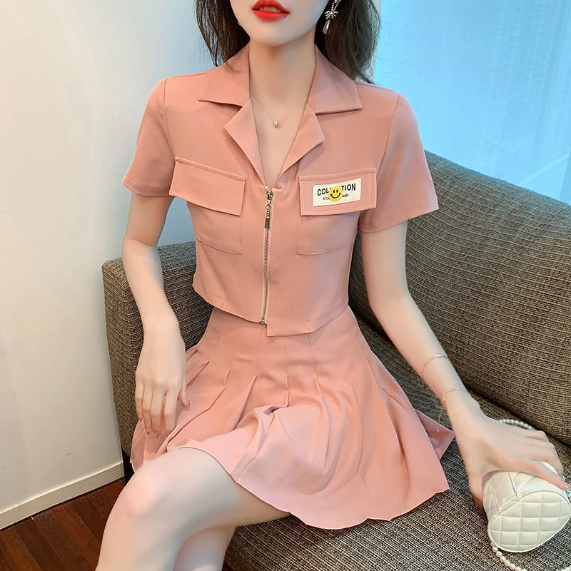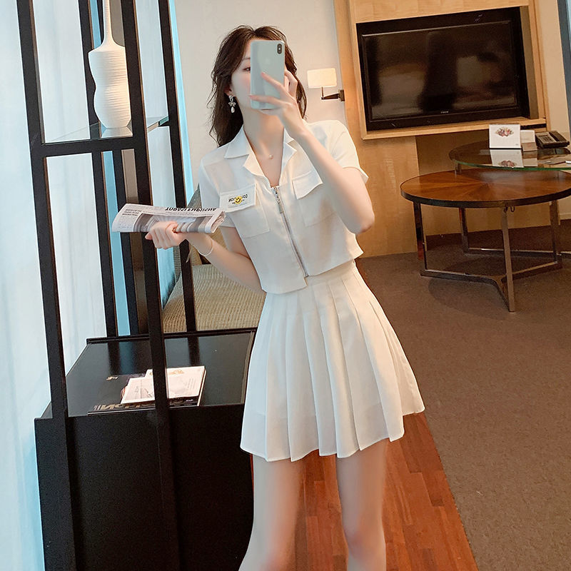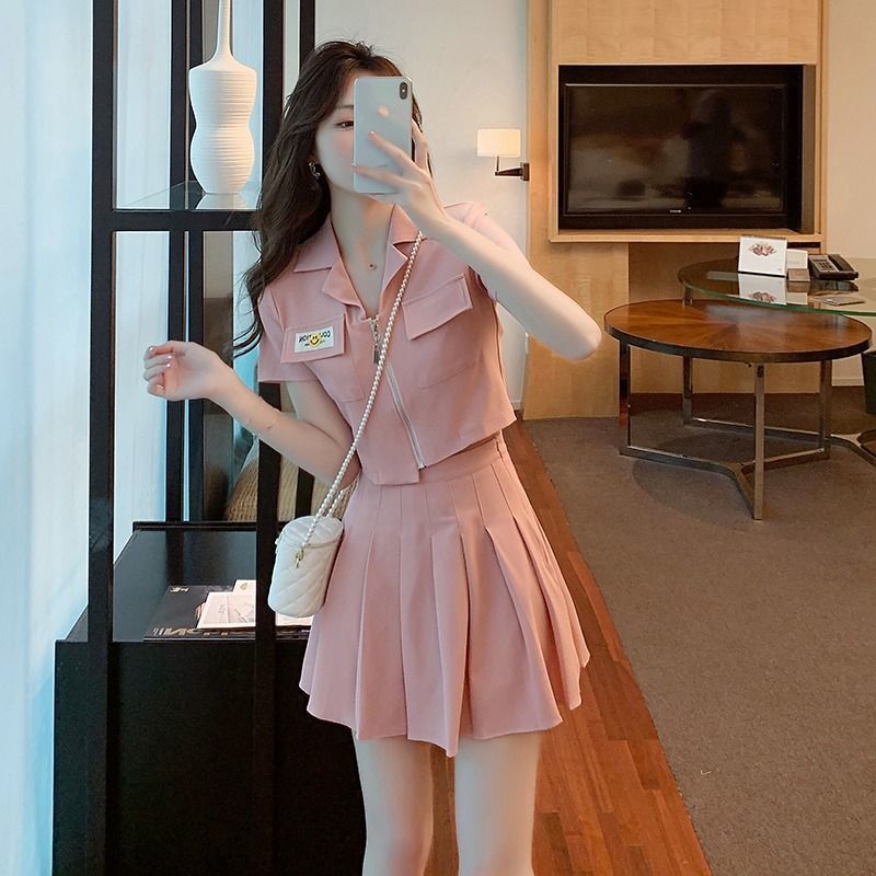 | nameOriginal | College-style Age-reducing Temperament Short-sleeved Suit Short Jacket Pleated Half-length Skirt Summer New Two-piece Suit Women |